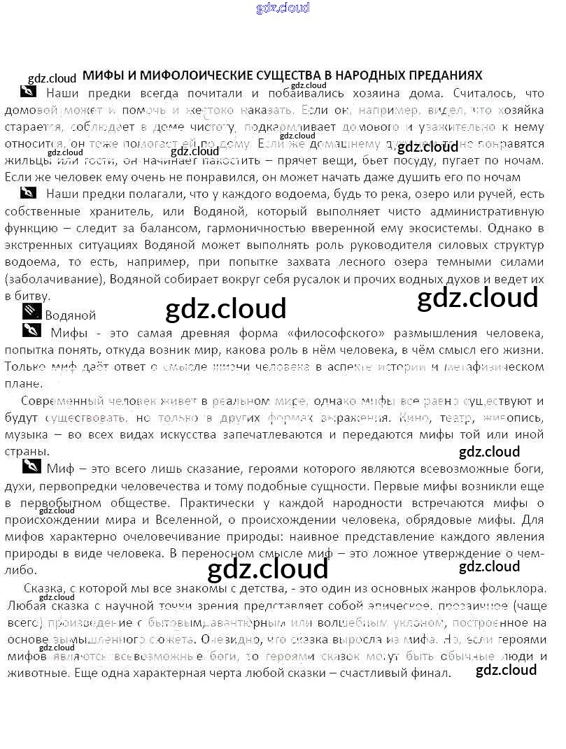 Ответ на задание Мифы и мифологические существа в народных преданиях Рабочая тетрадь Литература за 5 (пятый) класс Курдюмова Вертикаль 2017 Часть 1, 2