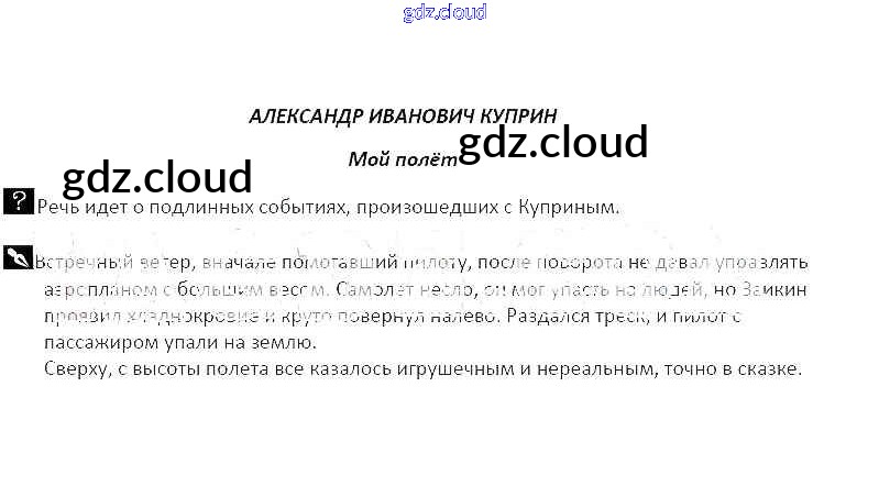 Ответ на задание Александр Иванович Куприн Мой полёт Рабочая тетрадь Литература за 5 (пятый) класс Курдюмова Вертикаль 2017 Часть 1, 2