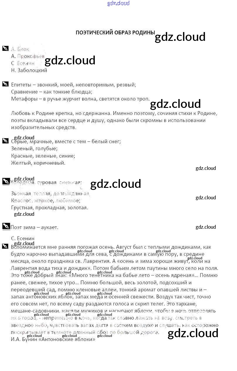 Ответ на задание Поэтический образ Родины Рабочая тетрадь Литература за 5 (пятый) класс Курдюмова Вертикаль 2017 Часть 1, 2