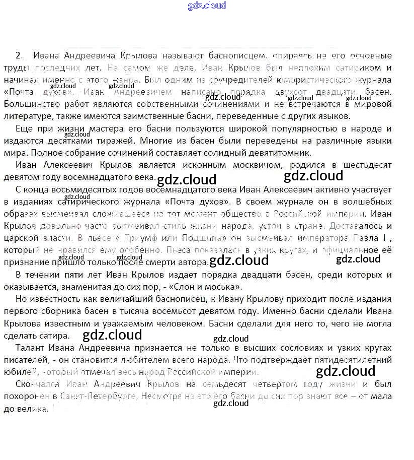 Ответ на задание 2 Рабочая тетрадь Литература за 5 (пятый) класс Ланин, Устинова, Шамчикова, Андрейченко Алгоритм успеха 2017 Часть 1, 2