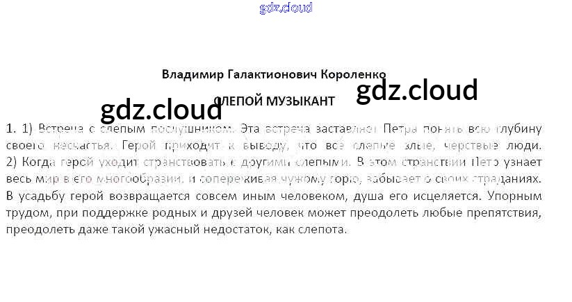 Владимир Галактионович Короленко Слепой музыкант Ответы к Части 2 по Литературе 5 класс Рабочая тетрадь Ланин Алгоритм успеха Часть 1, 2 Вентана-граф