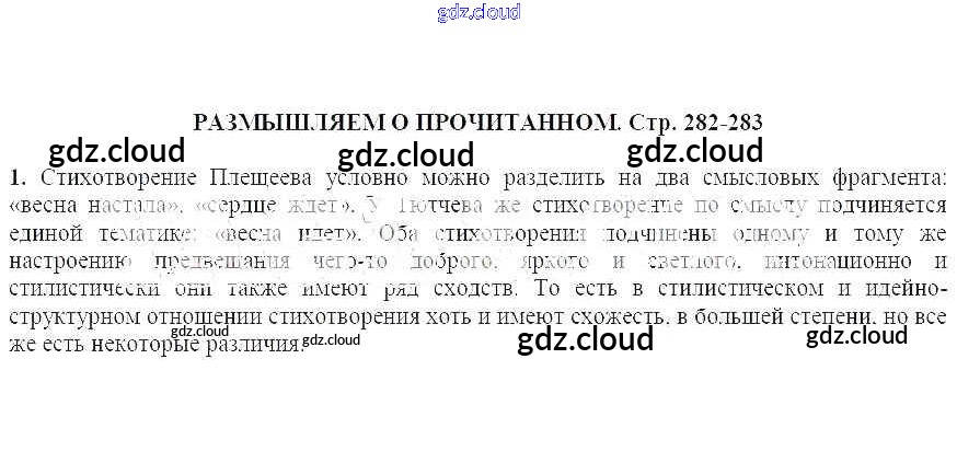 Ответ на задание 282 Учебник Литература за 5 (пятый) класс Коровина, Журавлев, Коровин 2019 Часть 1, 2