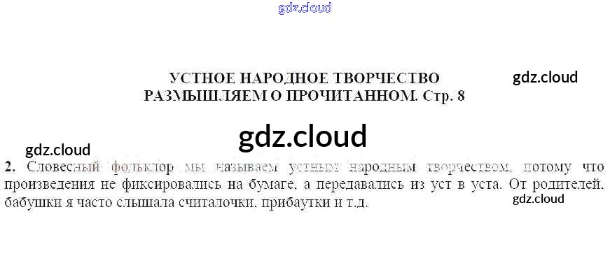 Ответ на задание 8 Учебник Литература за 5 (пятый) класс Коровина, Журавлев, Коровин 2019 Часть 1, 2