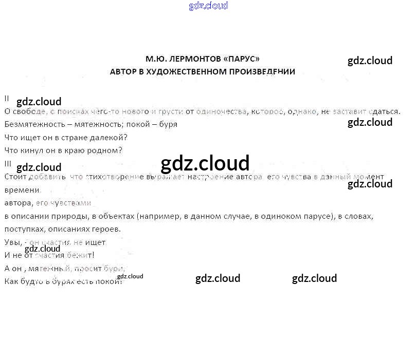 Ответ на задание М.Ю. Лермонтов. Парус. Автор в художественном произведении Рабочая тетрадь Литература за 5 (пятый) класс Бунеев, Чиндилова, Бунеева Школа 2100 2014