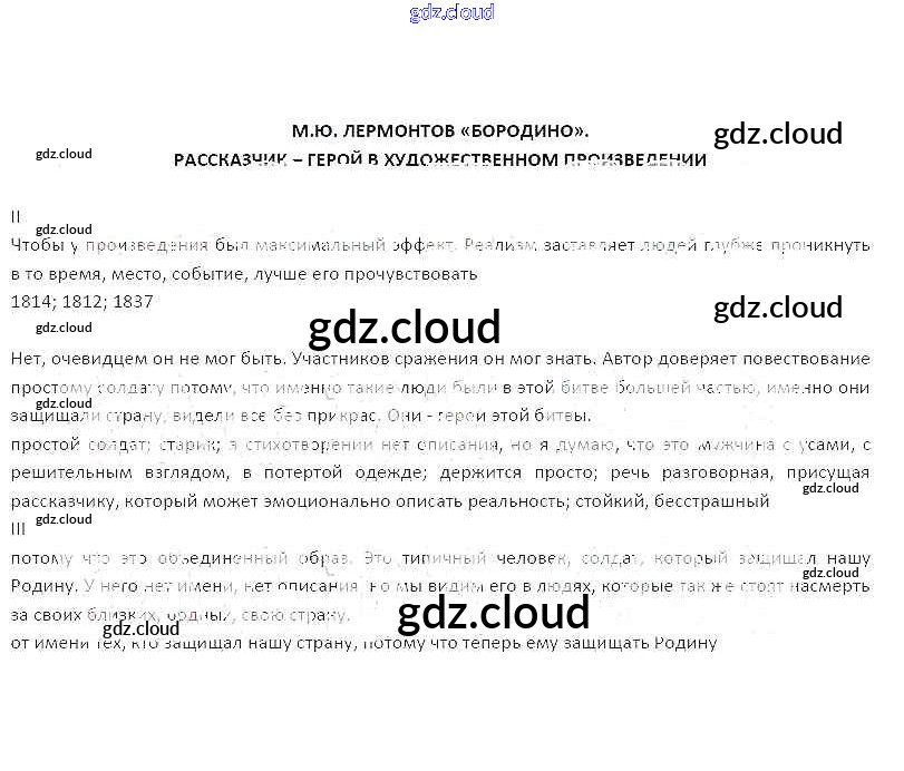 Ответ на задание М.Ю. Лермонтов. Бородино. Рассказчик - герой в художественном произведении Рабочая тетрадь Литература за 5 (пятый) класс Бунеев, Чиндилова, Бунеева Школа 2100 2014