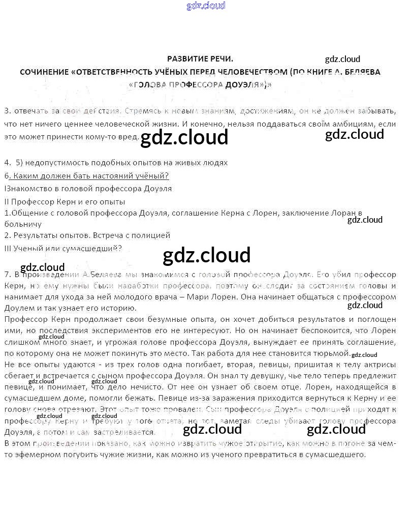 Ответ на задание Развитие речи. Сочинение Ответственность учёных перед человечеством (по книге А. Беляева Голова профессора Доуэля) Рабочая тетрадь Литература за 5 (пятый) класс Бунеев, Чиндилова, Бунеева Школа 2100 2014