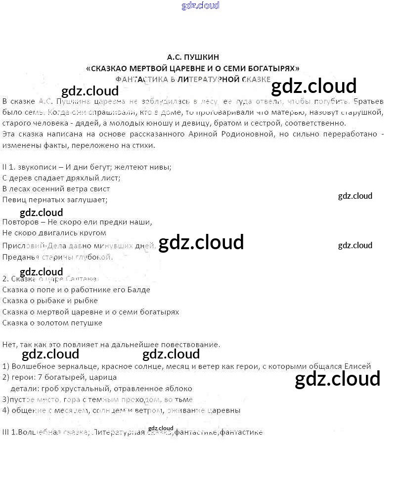 Ответ на задание А.С. Пушкин. Сказка о мёртвой царевне и о семи богатырях. Фантастика в литературной сказке Рабочая тетрадь Литература за 5 (пятый) класс Бунеев, Чиндилова, Бунеева Школа 2100 2014