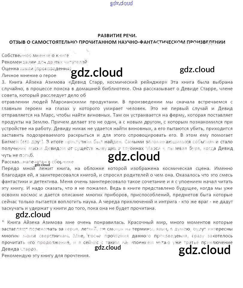 тема / Развитие речи. Отзыв о самостоятельно прочитанном научно-фантастическом произведении