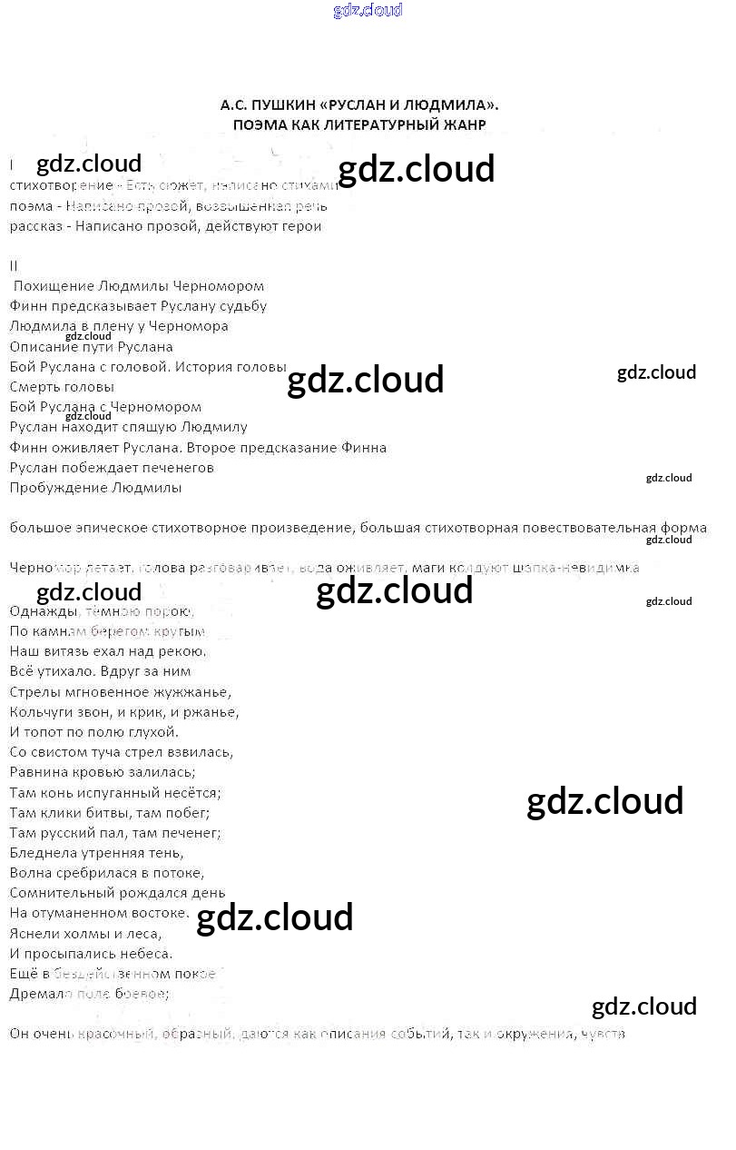 Ответ на задание А.С. Пушкин. Руслан и Людмила. Поэма как литературный жанр Рабочая тетрадь Литература за 5 (пятый) класс Бунеев, Чиндилова, Бунеева Школа 2100 2014