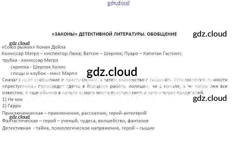 Ответ на задание Законы детективной литературы. Обобщение Рабочая тетрадь Литература за 5 (пятый) класс Бунеев, Чиндилова, Бунеева Школа 2100 2014
