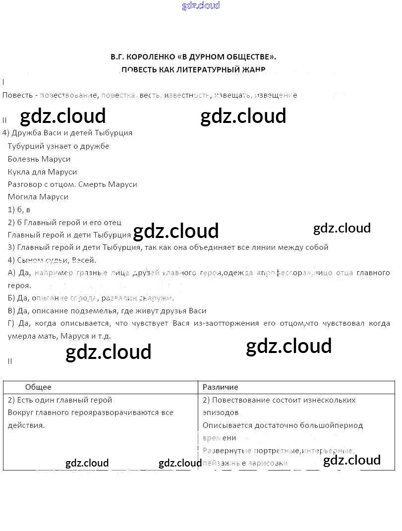 Ответ на задание В.Г. Короленко. В дурном обществе. Повесть как литературный жанр Рабочая тетрадь Литература за 5 (пятый) класс Бунеев, Чиндилова, Бунеева Школа 2100 2014