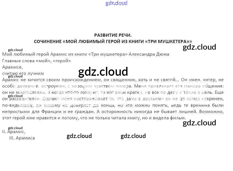 Ответ на задание Развитие речи. Сочинение - Мой любимый герой из книги Три мушкетёра Рабочая тетрадь Литература за 5 (пятый) класс Бунеев, Чиндилова, Бунеева Школа 2100 2014