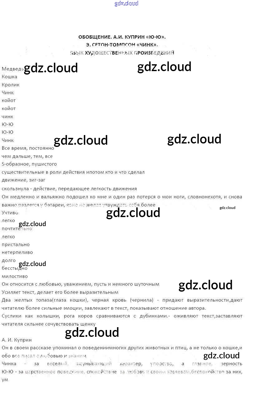 Ответ на задание Обобщение. А.И. Куприн. Ю-Ю. Э. Сетон-Томпсон Чинк. Язык художественных произведений Рабочая тетрадь Литература за 5 (пятый) класс Бунеев, Чиндилова, Бунеева Школа 2100 2014