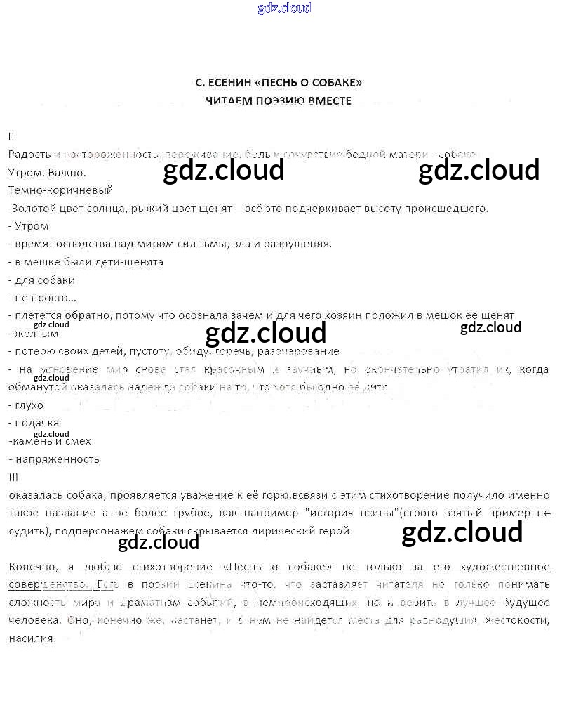 Ответ на задание С. Есенин. Песнь о собаке. Читаем поэзию вместе Рабочая тетрадь Литература за 5 (пятый) класс Бунеев, Чиндилова, Бунеева Школа 2100 2014