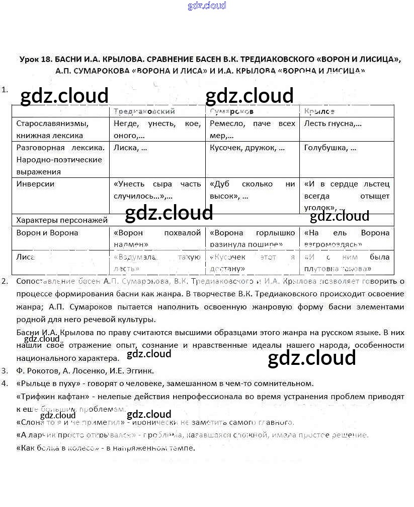 Ответ на задание 18 Рабочая тетрадь Литература за 5 (пятый) класс Соловьева Инновационная школа 2016 ФГОС онлайн и без номера телефона.