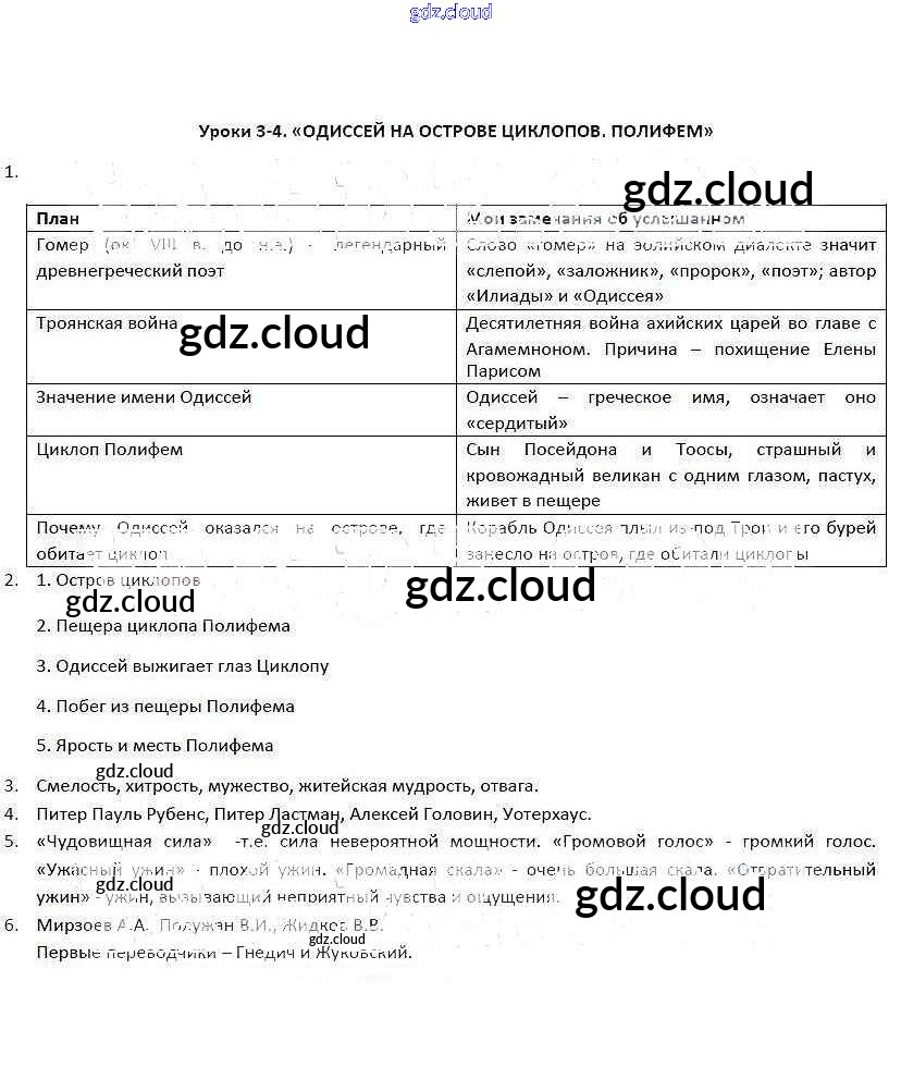 Ответы к урокам по Литературе 5 класс Рабочая тетрадь Соловьева Инновационная школа Русское слово