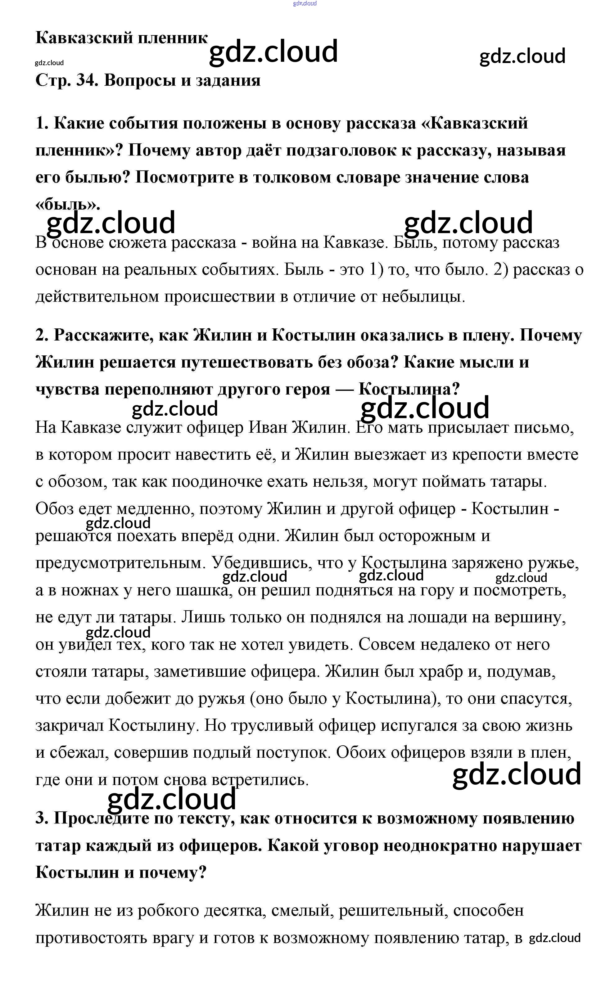 Ответ на задание страница 34 Учебник Литература за 5 (пятый) класс Чертов, Трубина, Ипполитова, Мамонова 2018 Часть 2