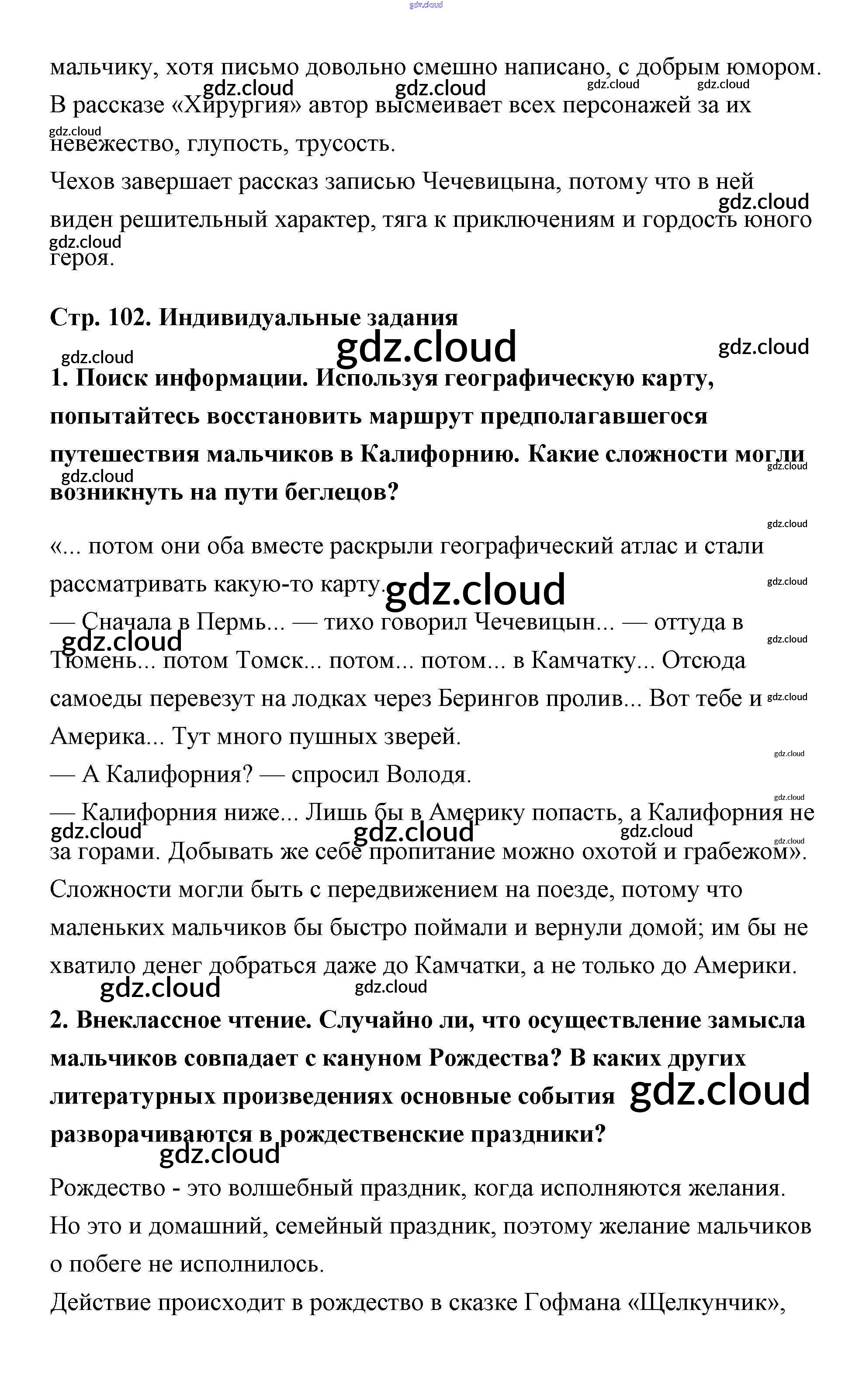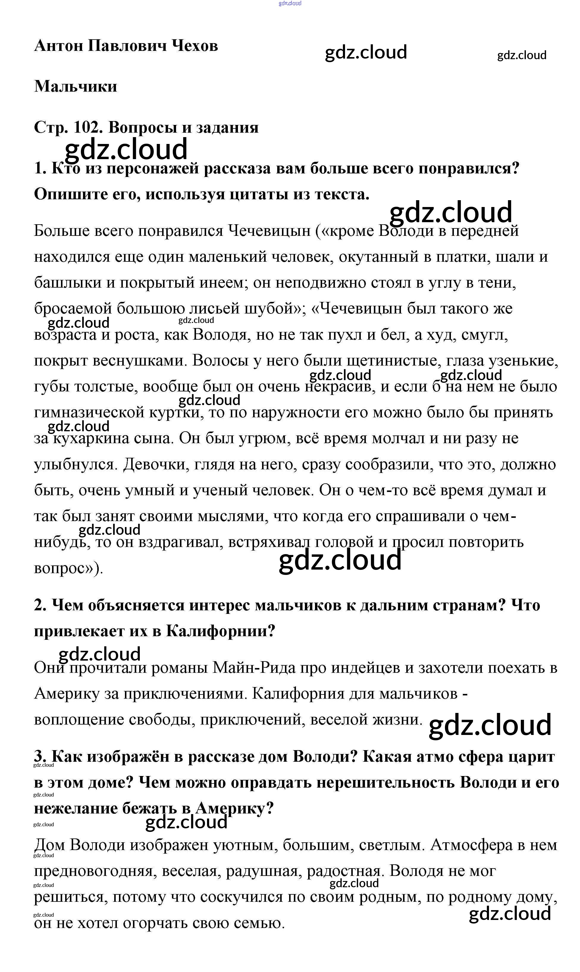 Ответ на задание страница 102 Учебник Литература за 5 (пятый) класс Чертов, Трубина, Ипполитова, Мамонова 2018 Часть 2