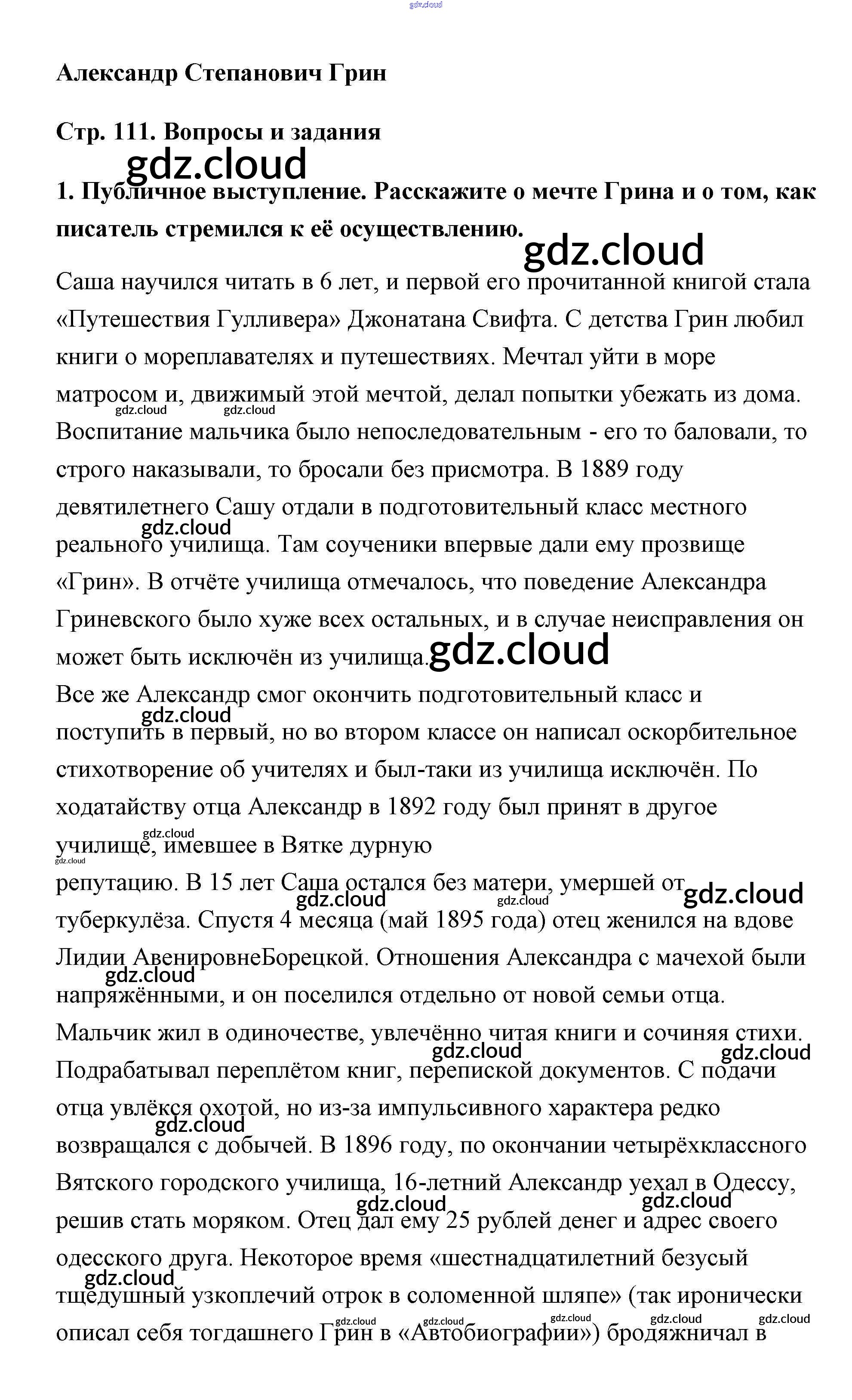 Ответ на задание страница 111 Учебник Литература за 5 (пятый) класс Чертов, Трубина, Ипполитова, Мамонова 2018 Часть 2