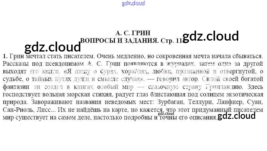 А.С. Грин Ответы к части 2 (Темы) по Литературе 5 класс Учебник Чертов Часть 2 Просвещение