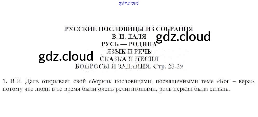 Русские пословицы из собрания Даля Ответы к части 1 (Темы) по Литературе 5 класс Учебник Чертов Часть 2 Просвещение