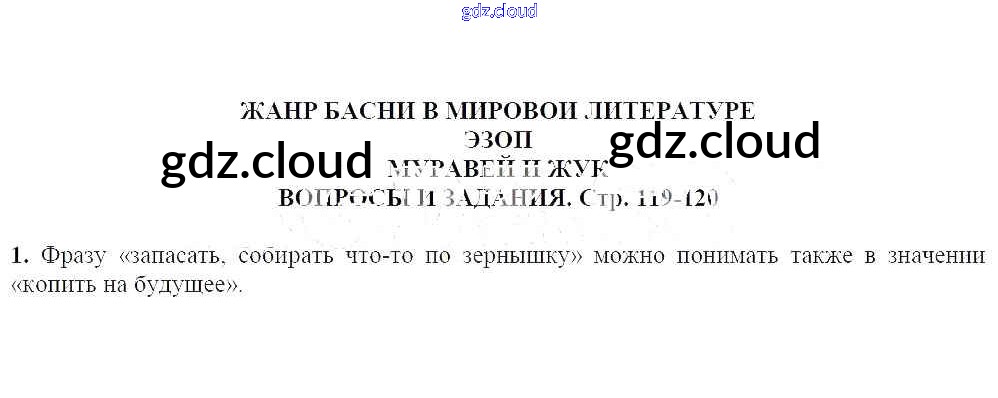 Эзоп. Муравей и жук Ответы к части 1 (Темы) по Литературе 5 класс Учебник Чертов Часть 2 Просвещение