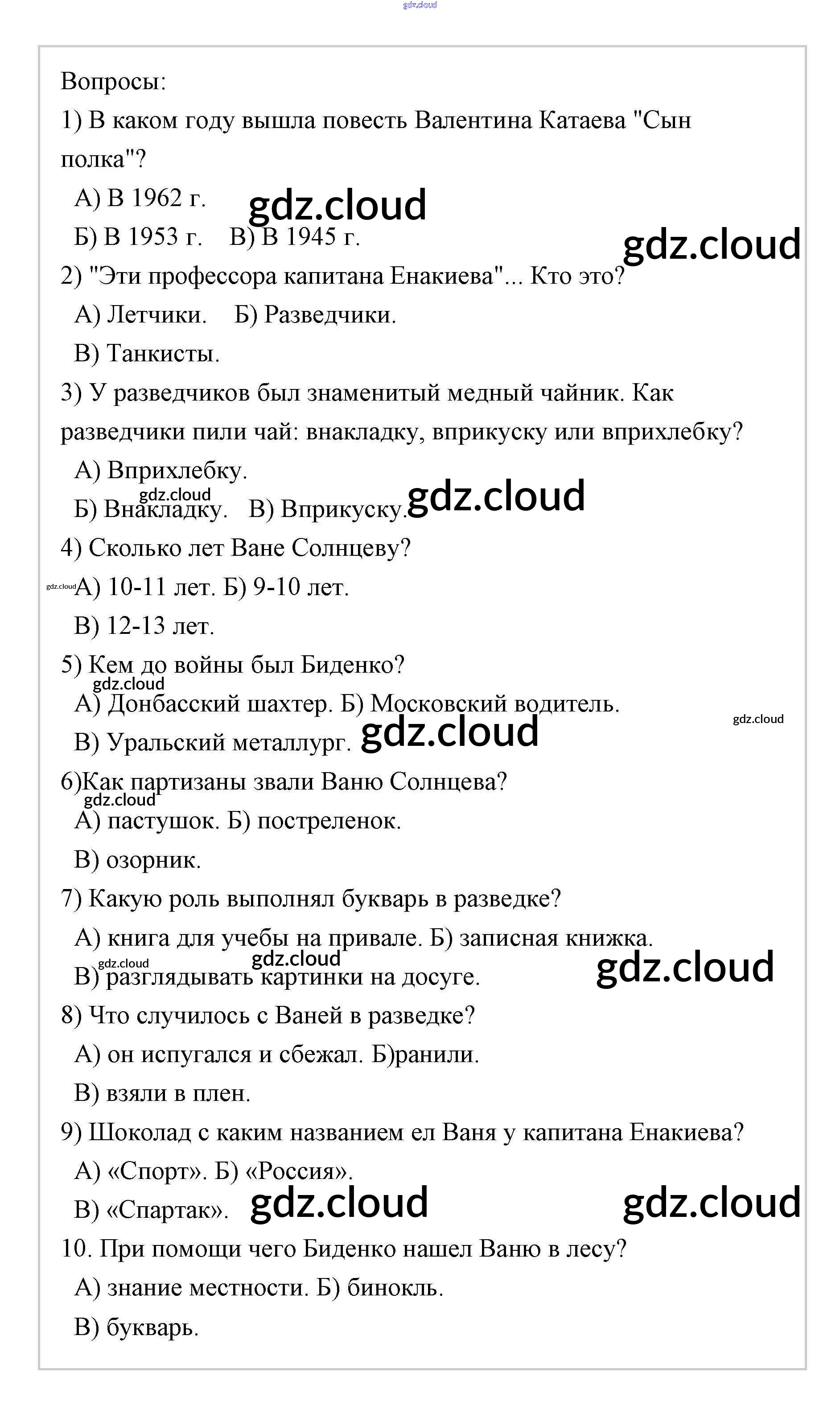 В.П. Катаев Ответы к части 2 (Темы) по Литературе 5 класс Учебник Чертов Часть 2 Просвещение