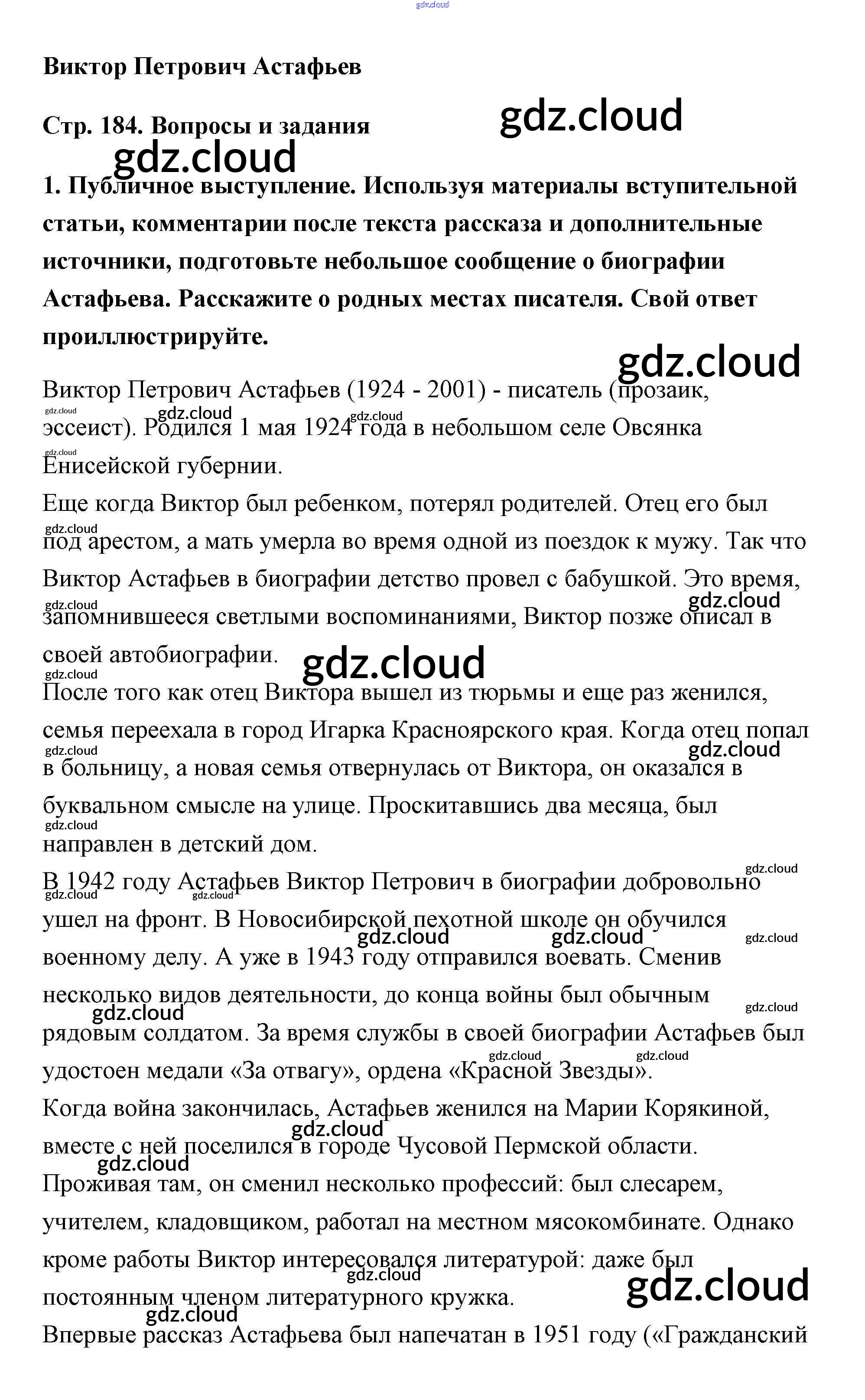 Ответ на задание страница 184 Учебник Литература за 5 (пятый) класс Чертов, Трубина, Ипполитова, Мамонова 2018 Часть 2