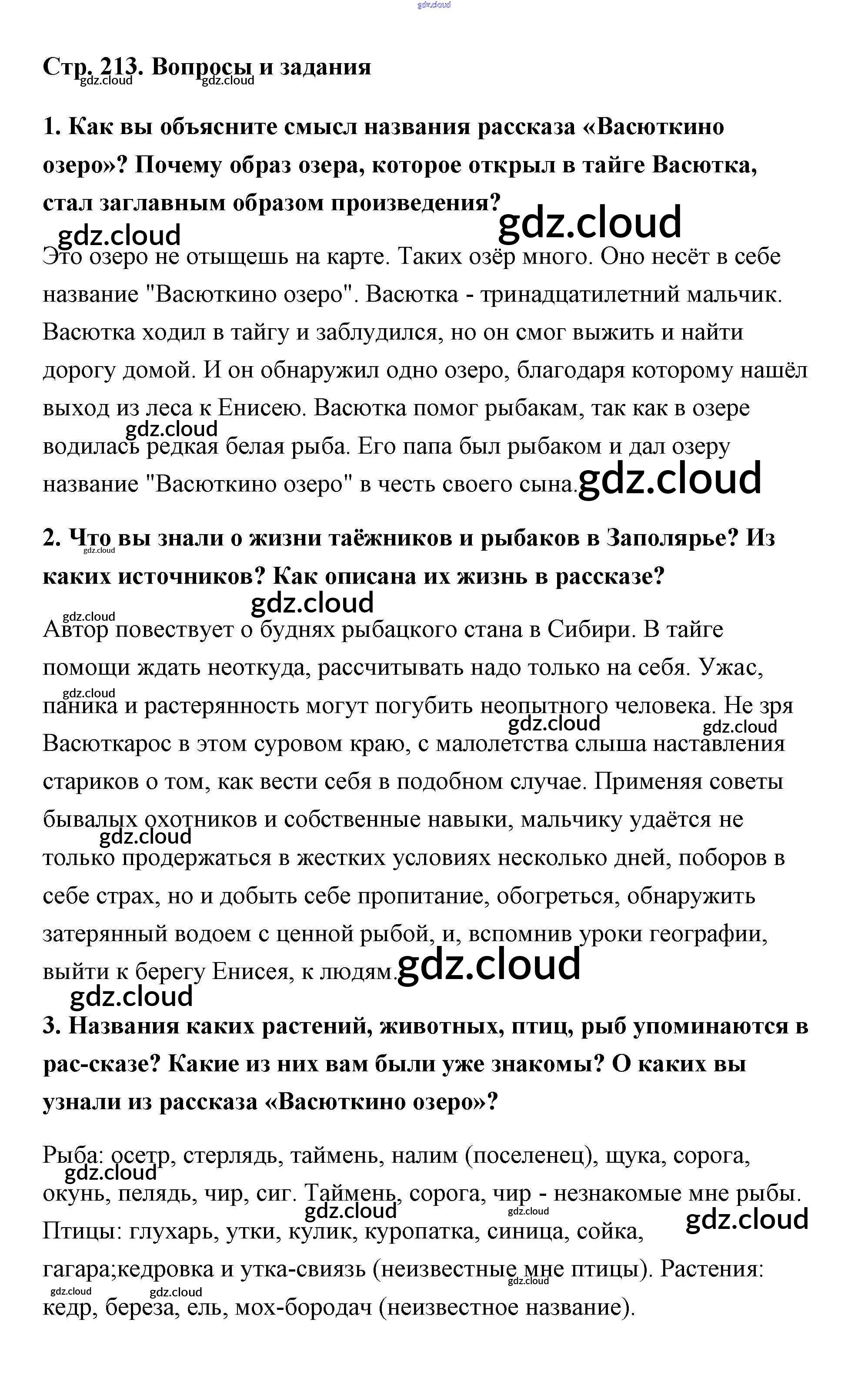 Ответ на задание страница 213 Учебник Литература за 5 (пятый) класс Чертов, Трубина, Ипполитова, Мамонова 2018 Часть 2