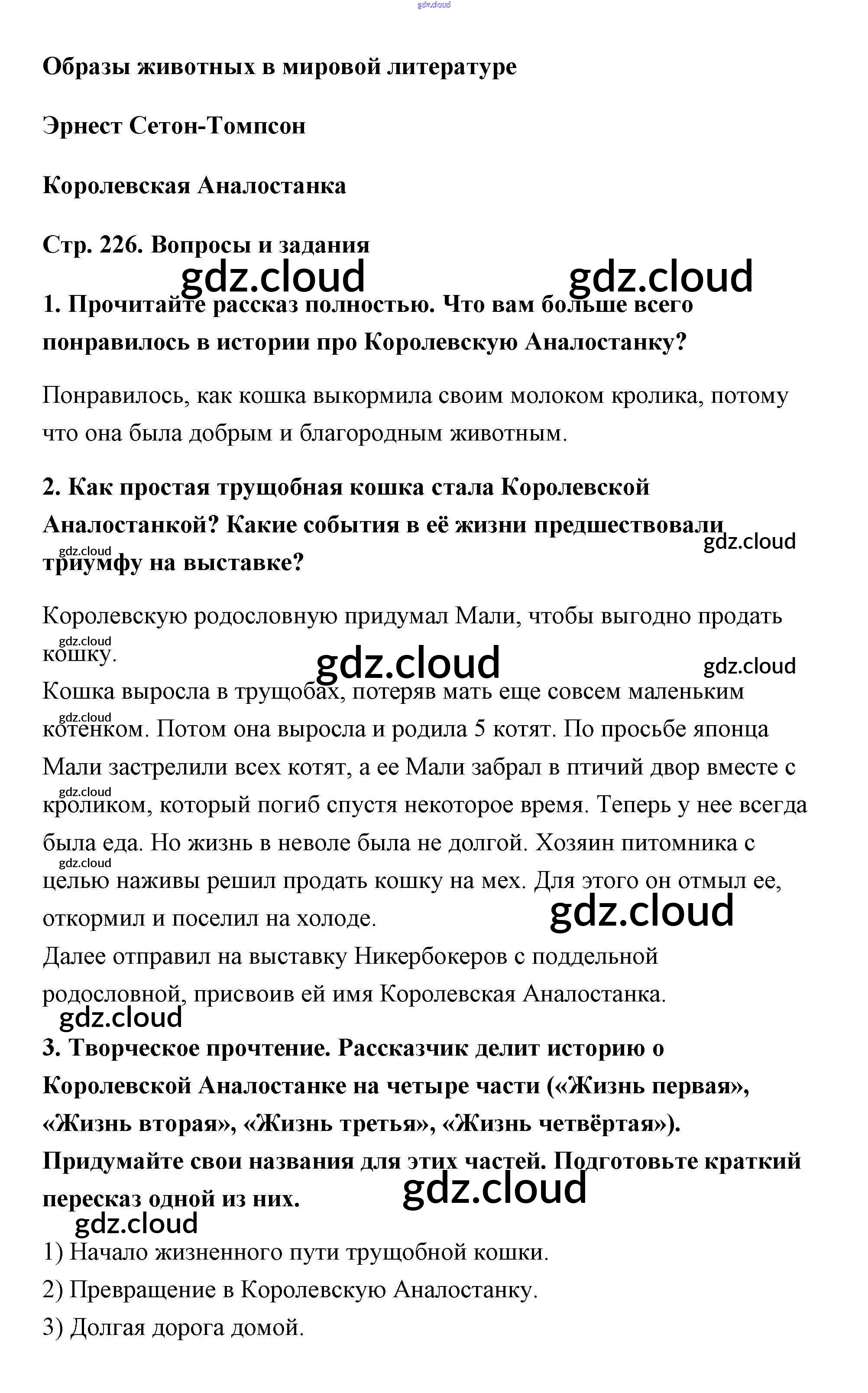 Ответ на задание страница 226 Учебник Литература за 5 (пятый) класс Чертов, Трубина, Ипполитова, Мамонова 2018 Часть 2