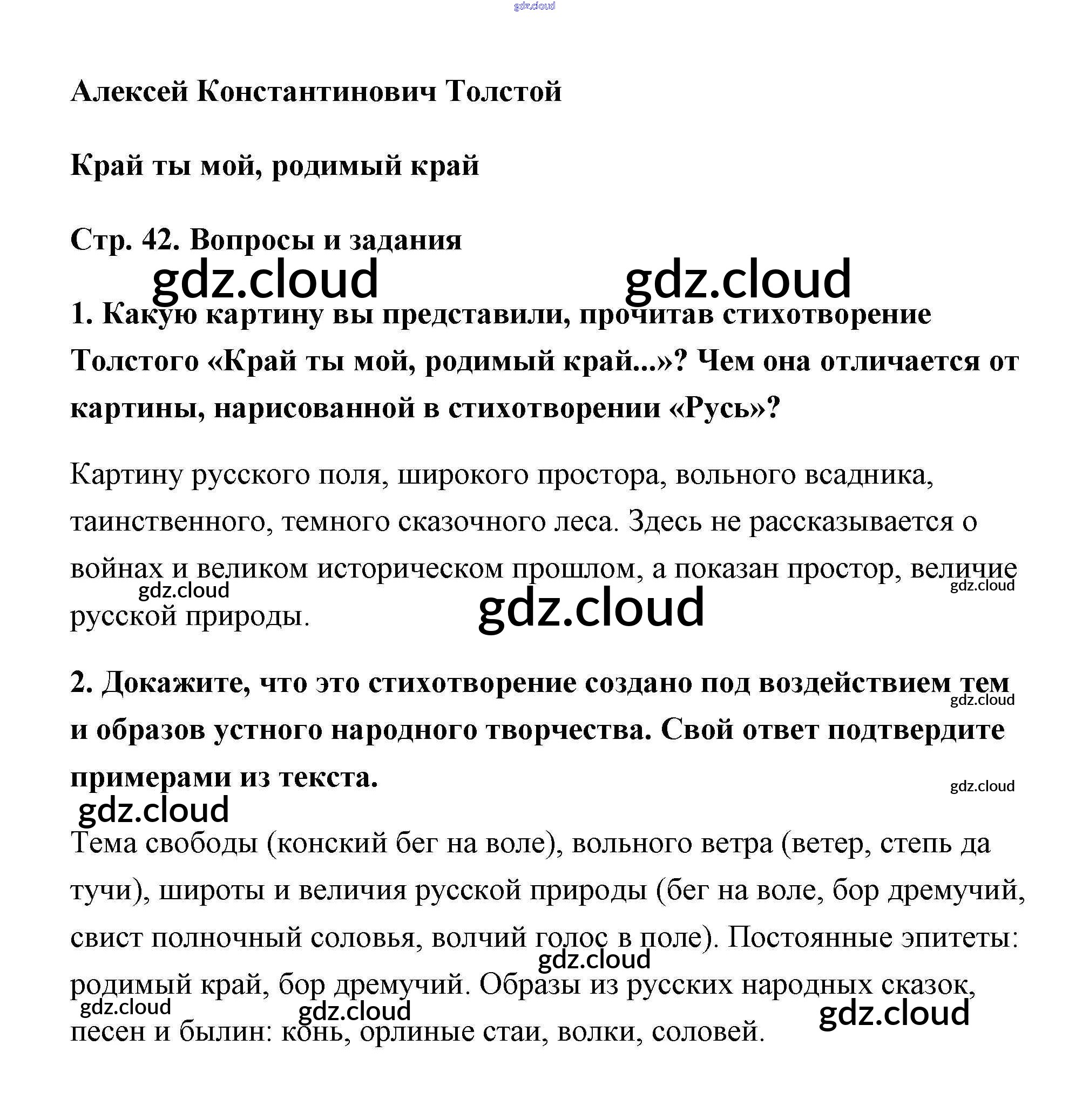 Ответ на задание страница 42 Учебник Литература за 5 (пятый) класс Чертов, Трубина, Ипполитова, Мамонова 2018 Часть 2