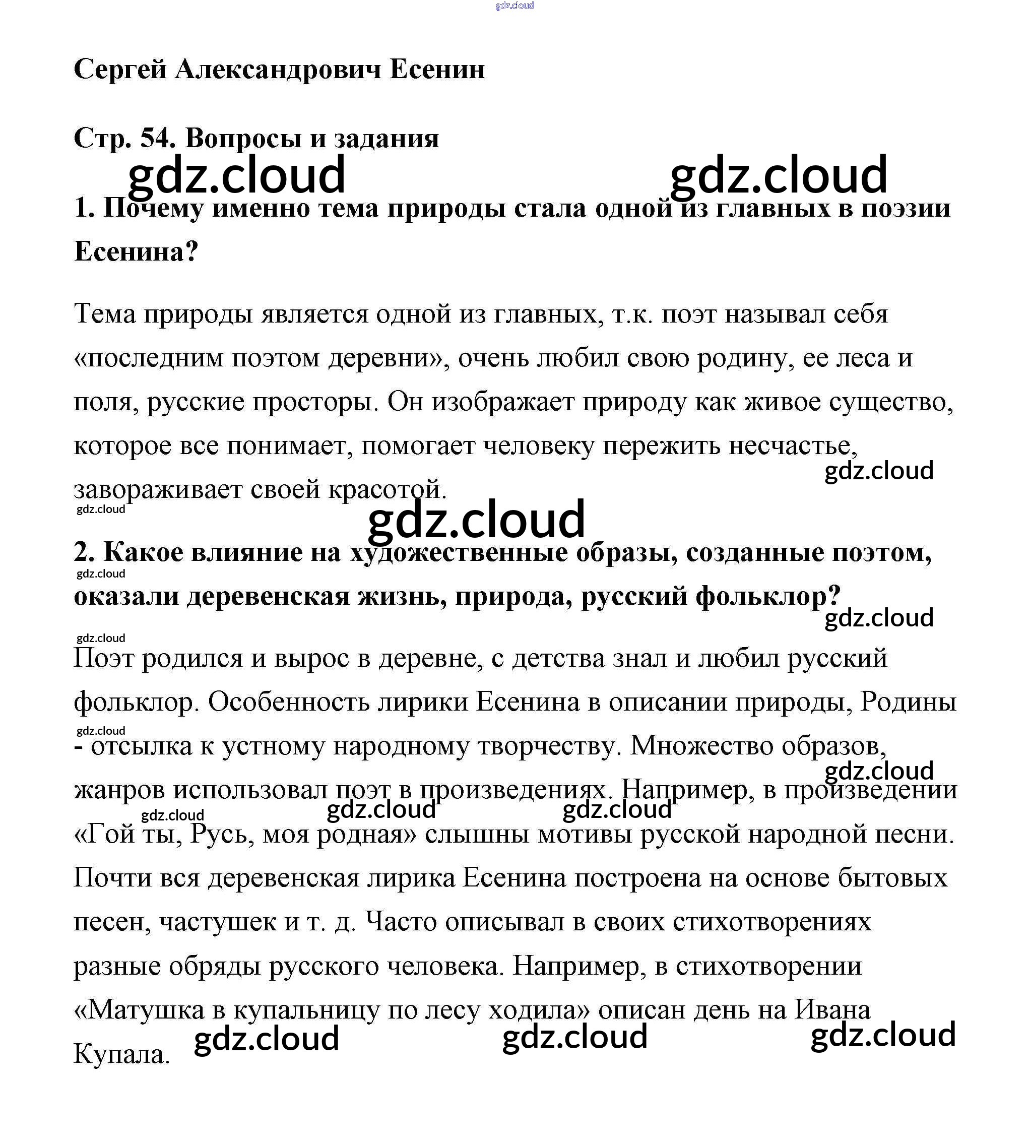 С.А. Есенин Ответы к части 2 (Темы) по Литературе 5 класс Учебник Чертов Часть 2 Просвещение