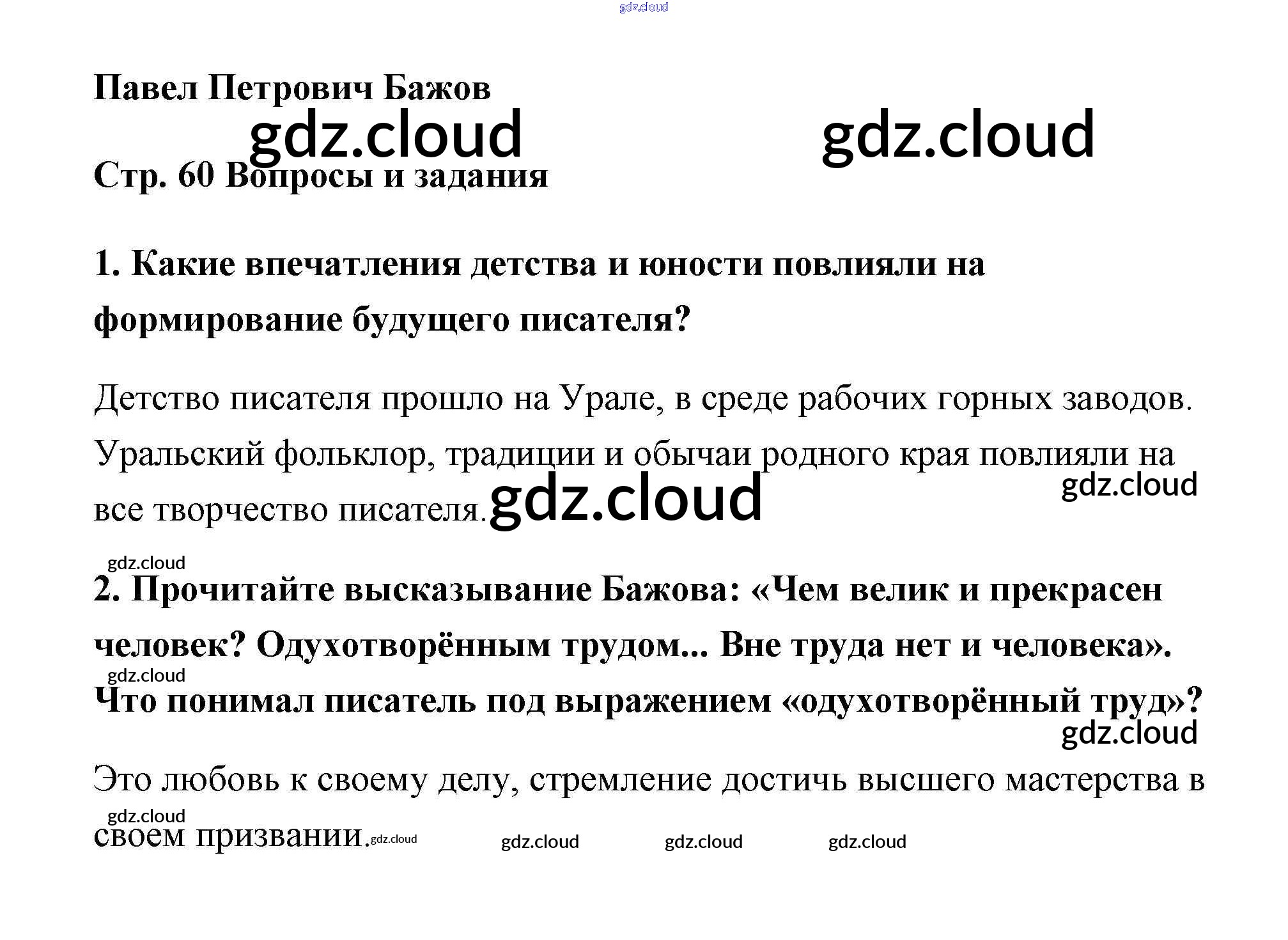 П.П. Бажов Ответы к части 2 (Темы) по Литературе 5 класс Учебник Чертов Часть 2 Просвещение