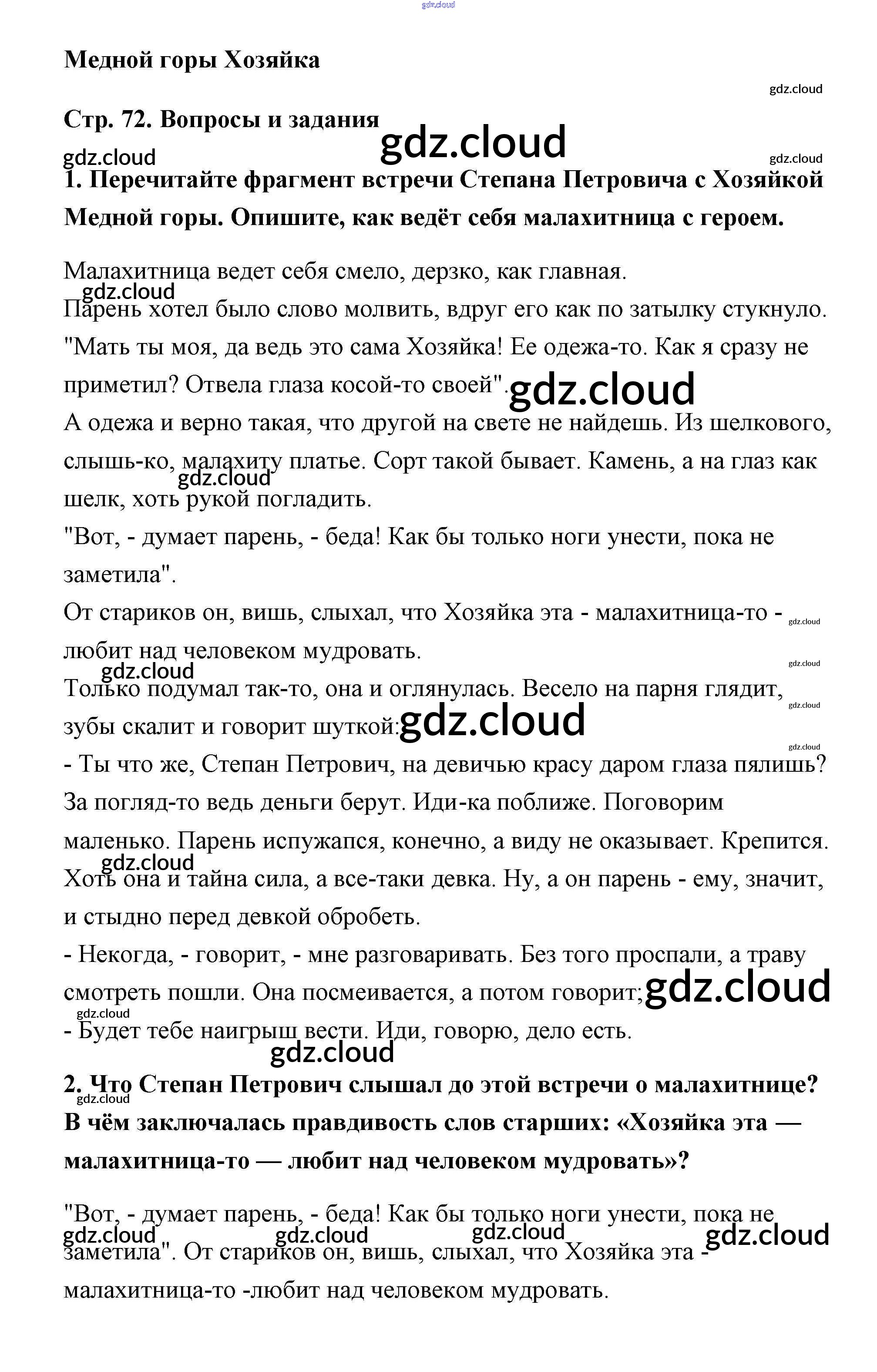 Ответ на задание страница 72 Учебник Литература за 5 (пятый) класс Чертов, Трубина, Ипполитова, Мамонова 2018 Часть 2