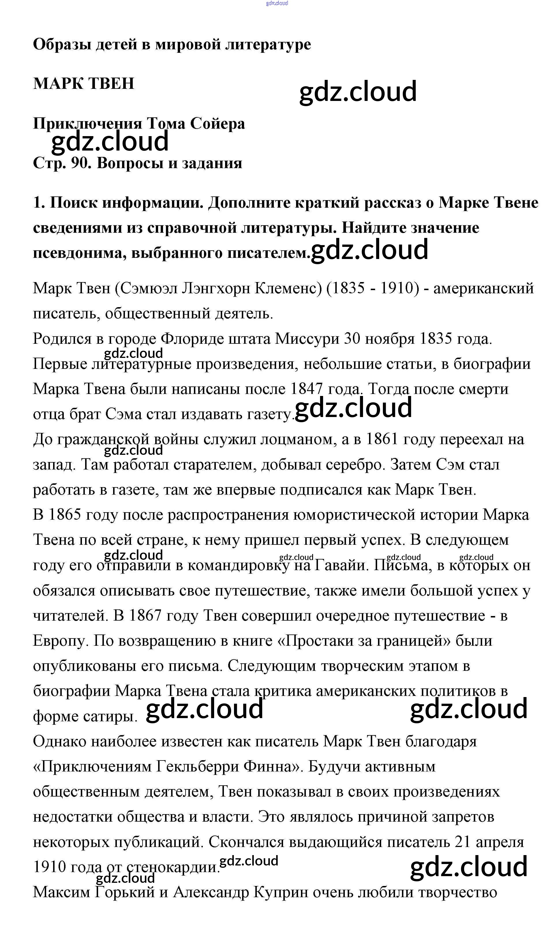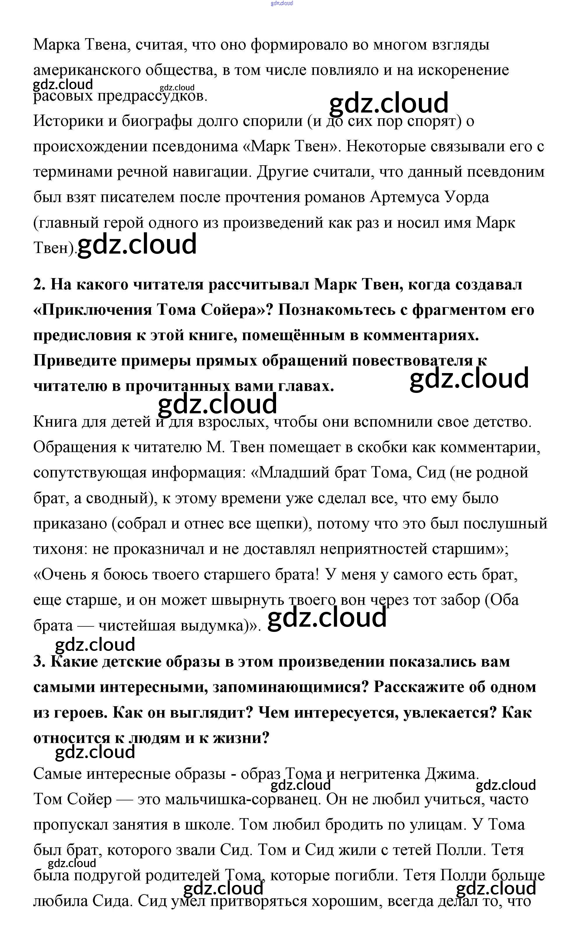 Марк Твен Ответы к части 2 (Темы) по Литературе 5 класс Учебник Чертов Часть 2 Просвещение
