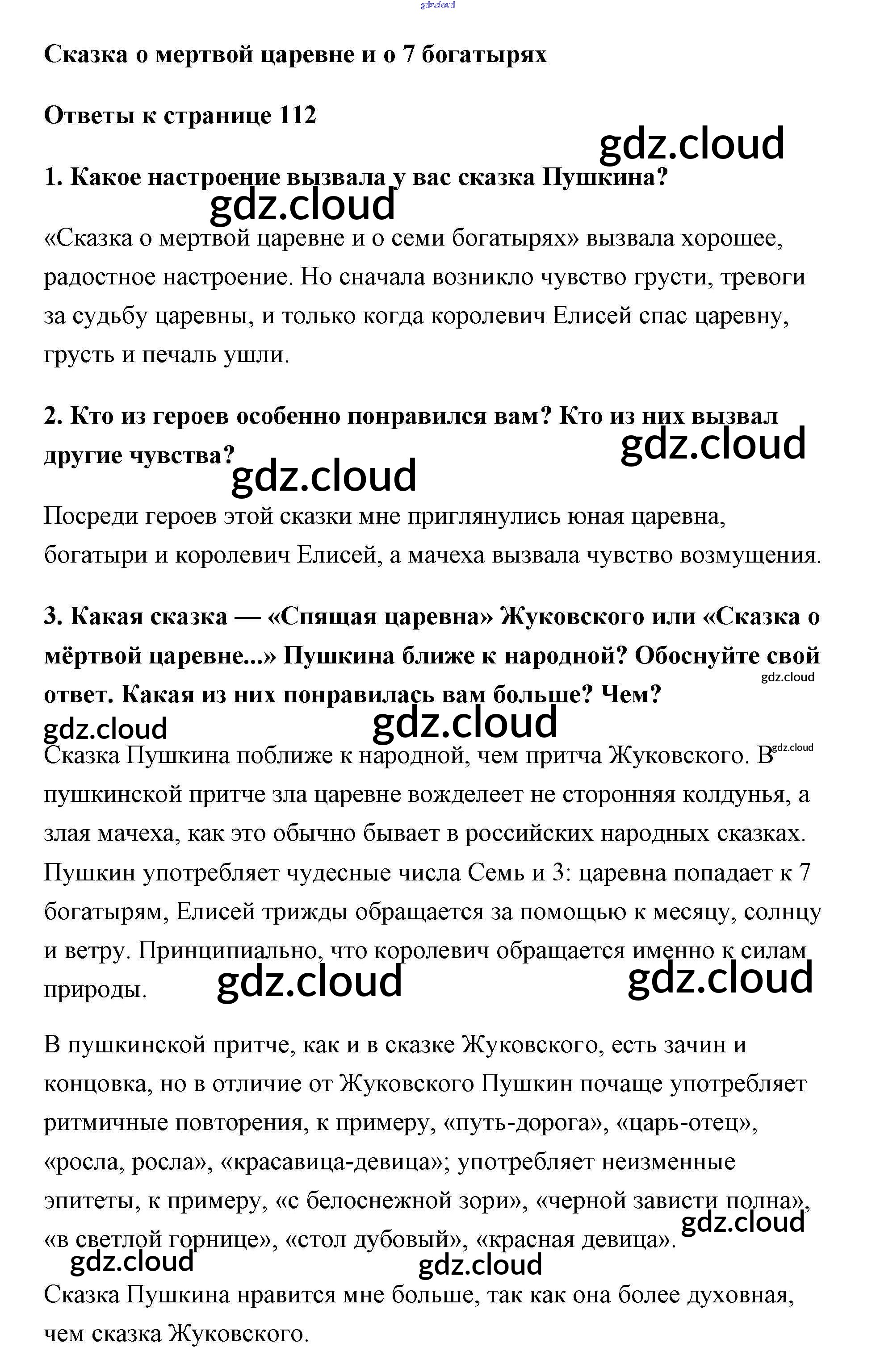 Ответ на задание стр.112 Учебник Литература за 5 (пятый) класс Коровина, Коровин, Журавлев 2016 Часть 1, 2
