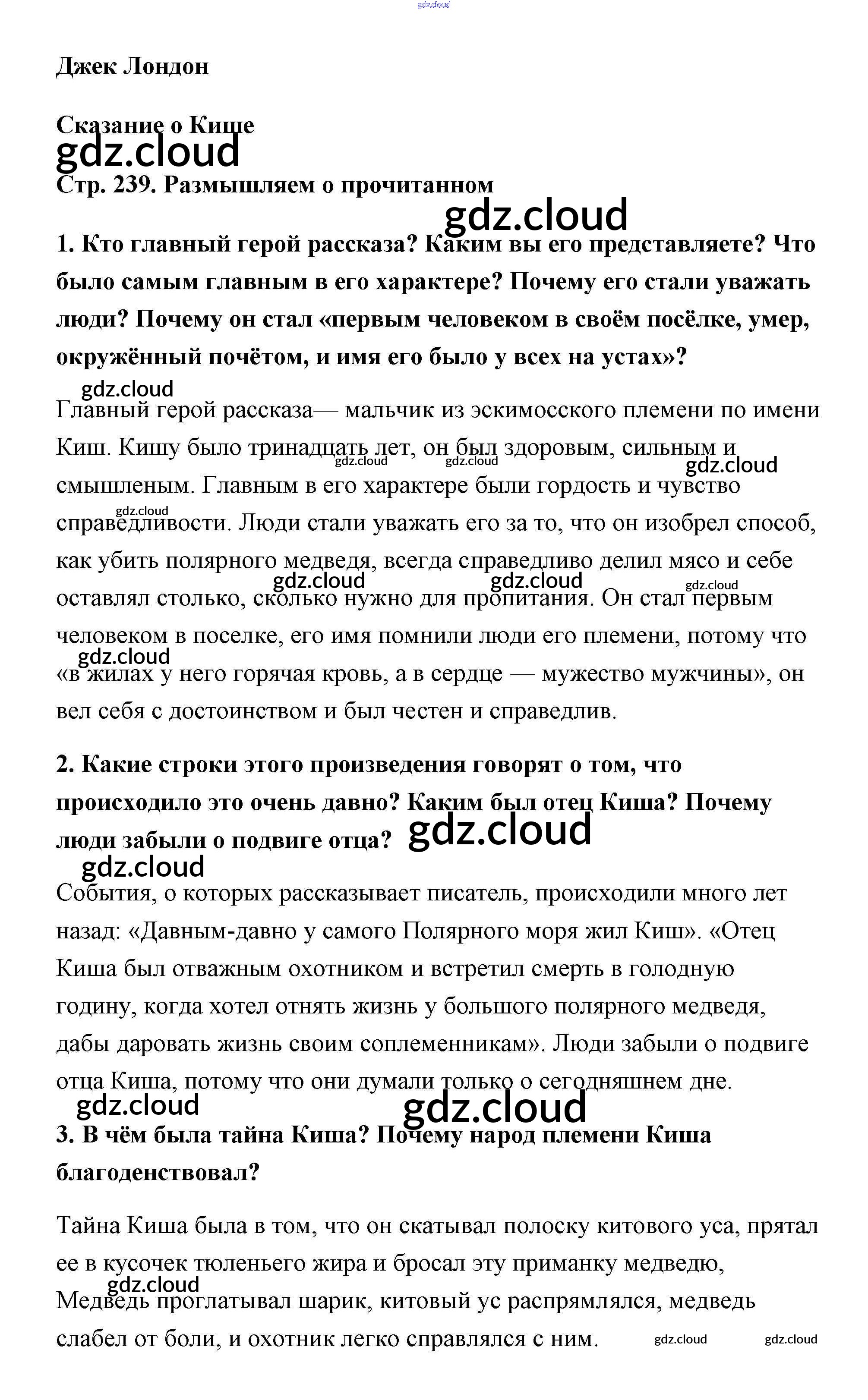 Ответ на задание 239 Учебник Литература за 5 (пятый) класс Коровина, Коровин, Журавлев 2016 Часть 1, 2