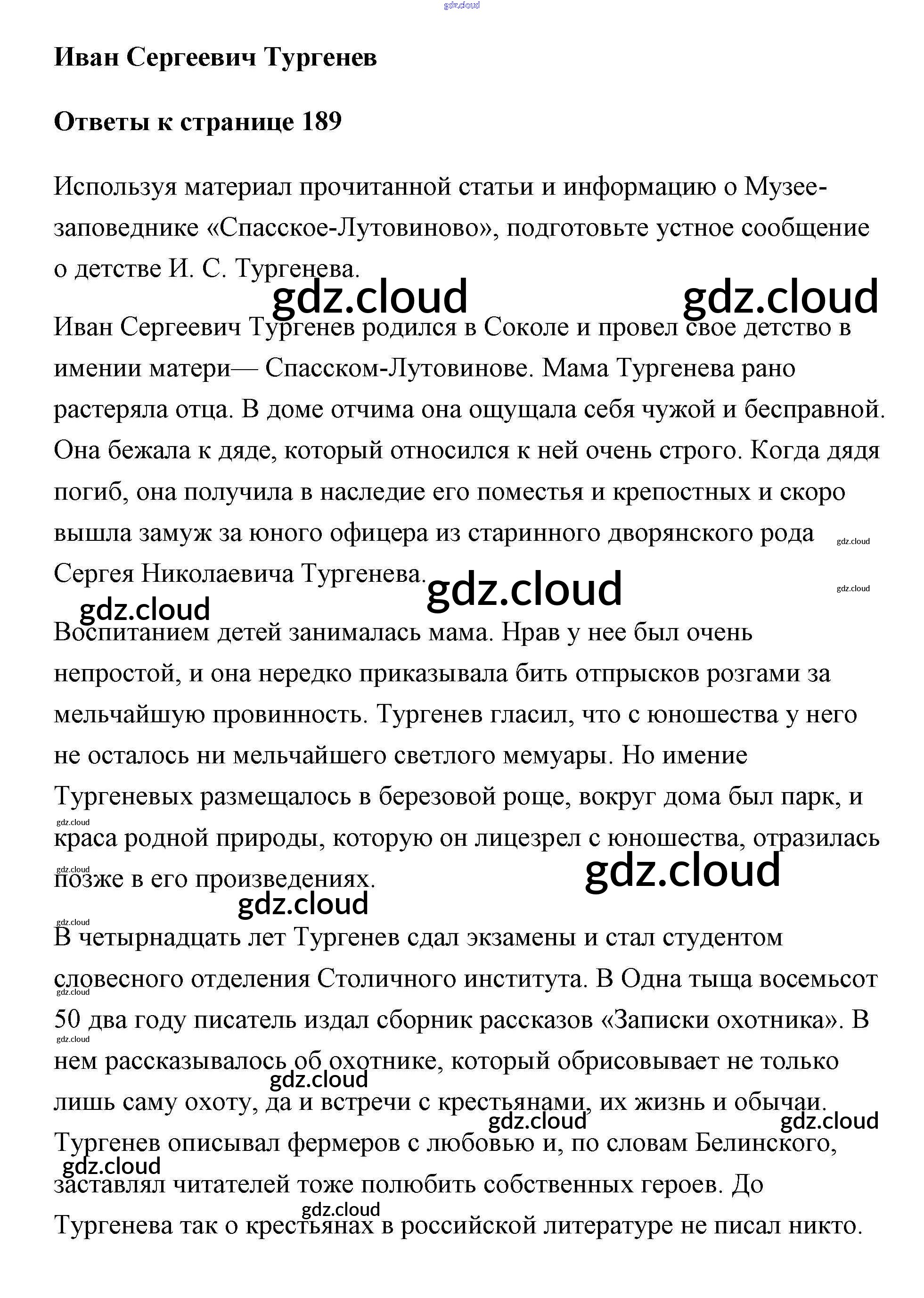 Ответ на задание стр.189 Учебник Литература за 5 (пятый) класс Коровина, Коровин, Журавлев 2016 Часть 1, 2