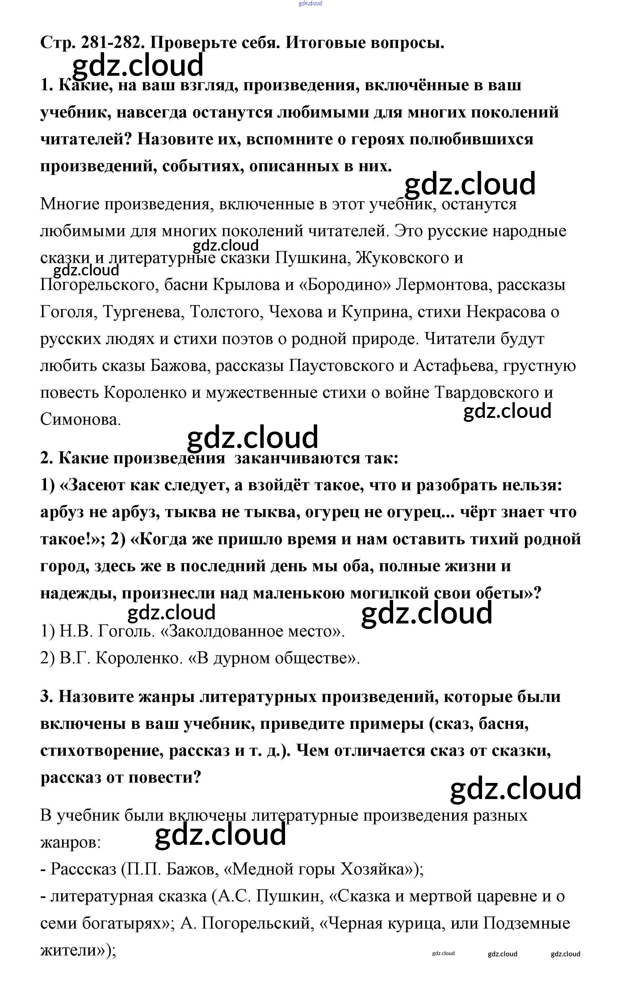 Ответ на задание 281 Учебник Литература за 5 (пятый) класс Коровина, Коровин, Журавлев 2016 Часть 1, 2