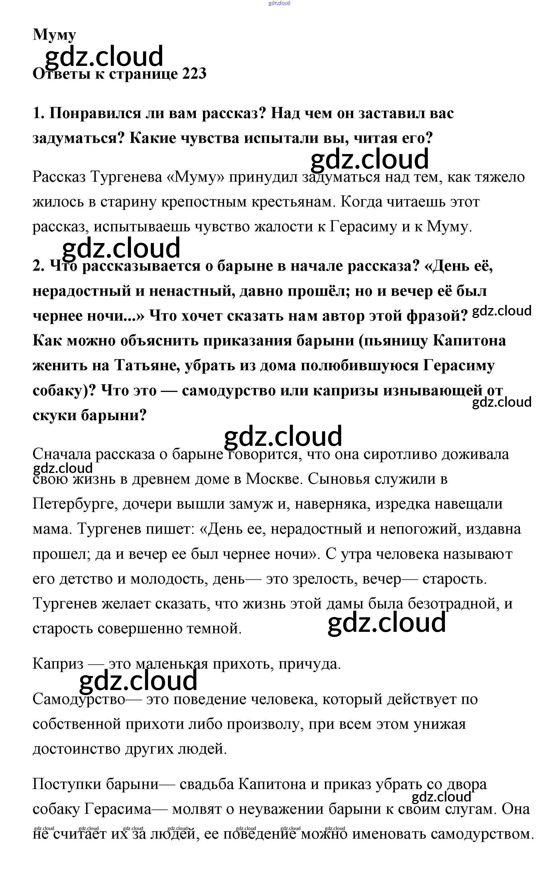 Ответ на задание стр.223 Учебник Литература за 5 (пятый) класс Коровина, Коровин, Журавлев 2016 Часть 1, 2