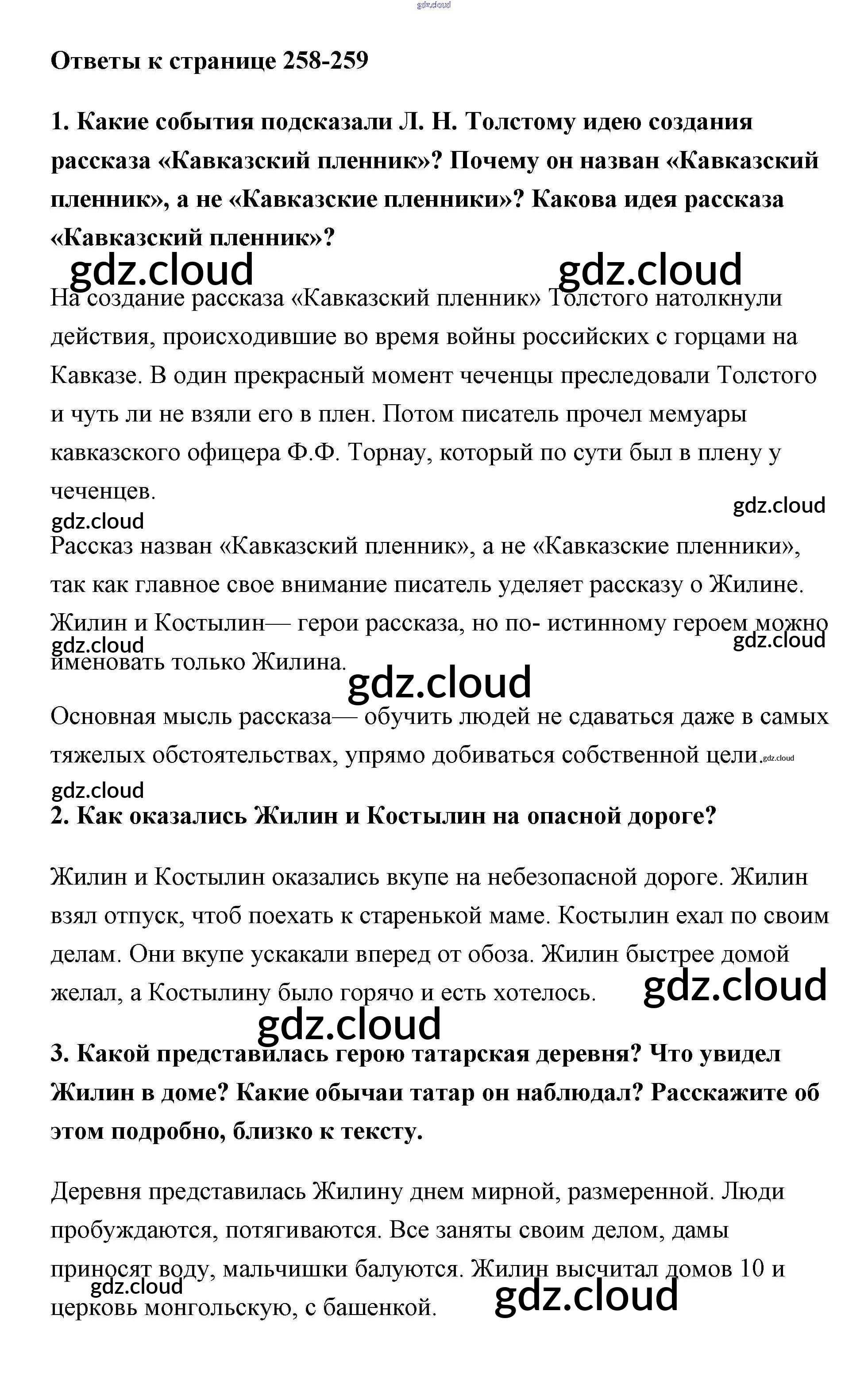 Ответ на задание стр.258 Учебник Литература за 5 (пятый) класс Коровина, Коровин, Журавлев 2016 Часть 1, 2