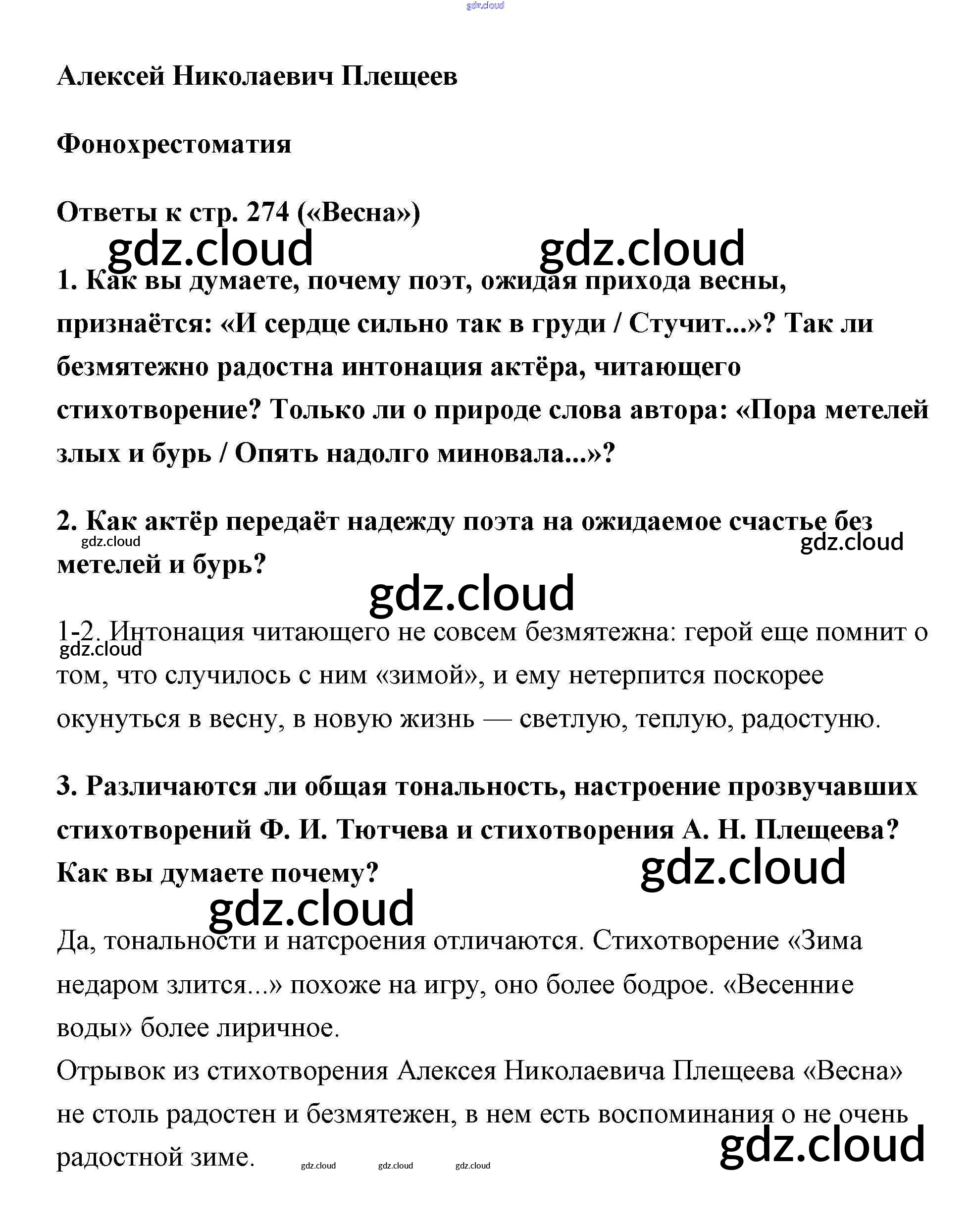 Ответ на задание стр.274 Учебник Литература за 5 (пятый) класс Коровина, Коровин, Журавлев 2016 Часть 1, 2