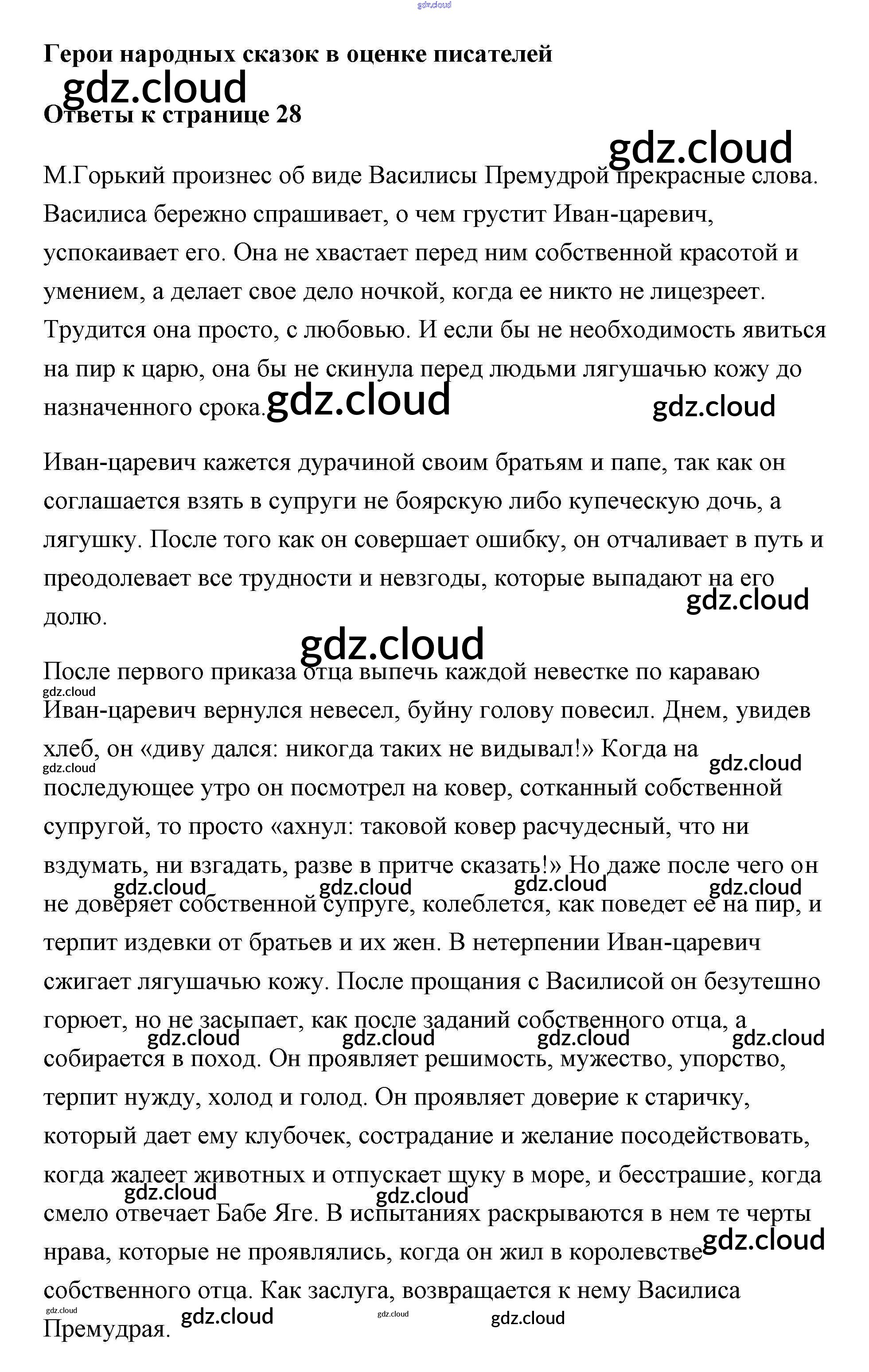 Ответ на задание стр.28 Учебник Литература за 5 (пятый) класс Коровина, Коровин, Журавлев 2016 Часть 1, 2