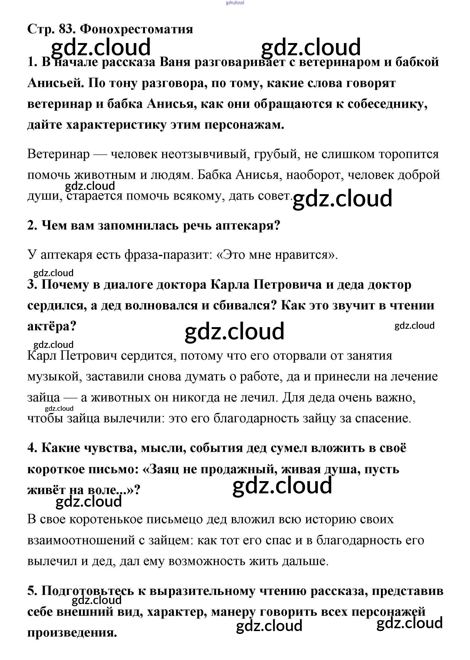 Ответ на задание 83 Учебник Литература за 5 (пятый) класс Коровина, Коровин, Журавлев 2016 Часть 1, 2