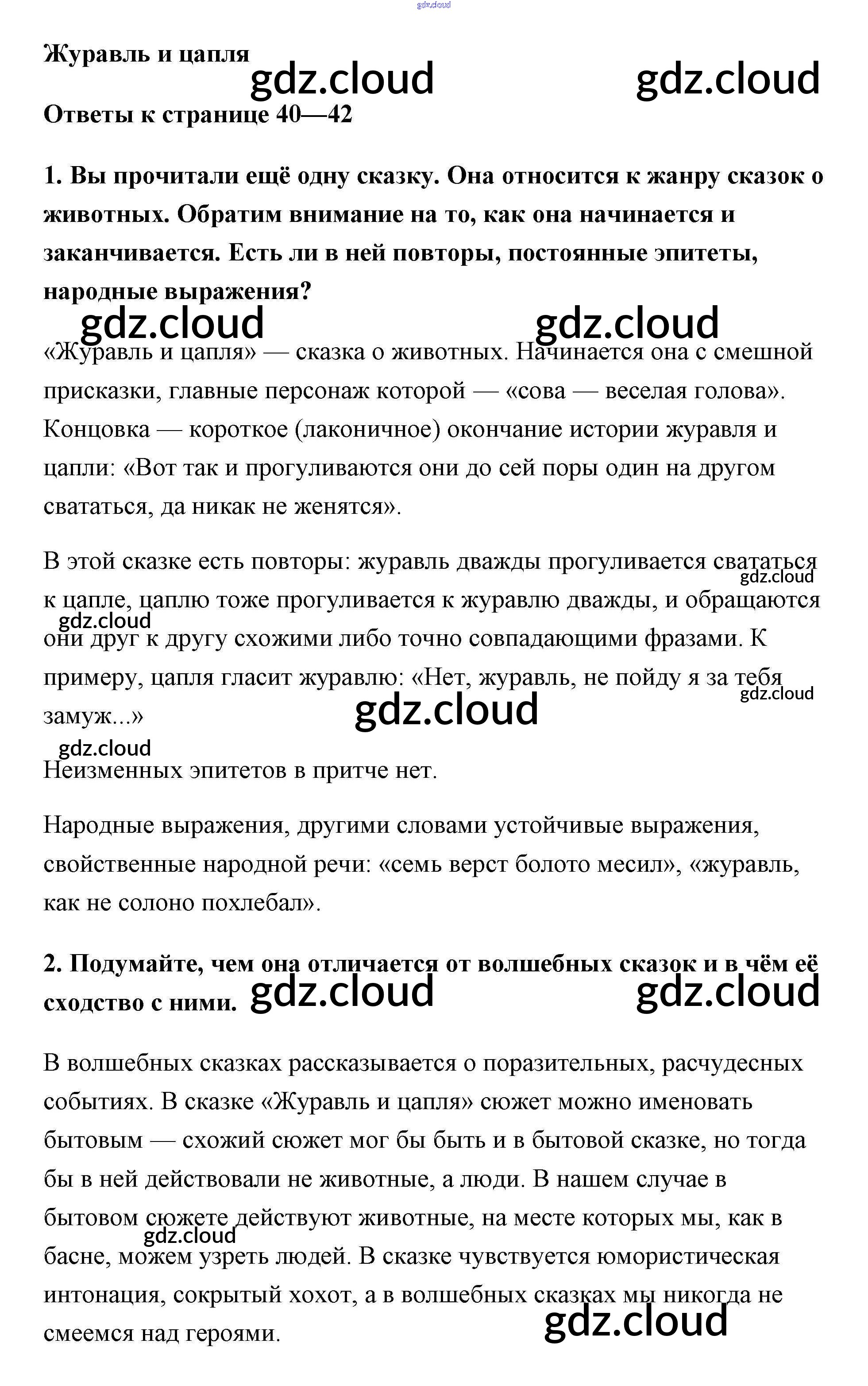 Ответ на задание стр.40 Учебник Литература за 5 (пятый) класс Коровина, Коровин, Журавлев 2016 Часть 1, 2