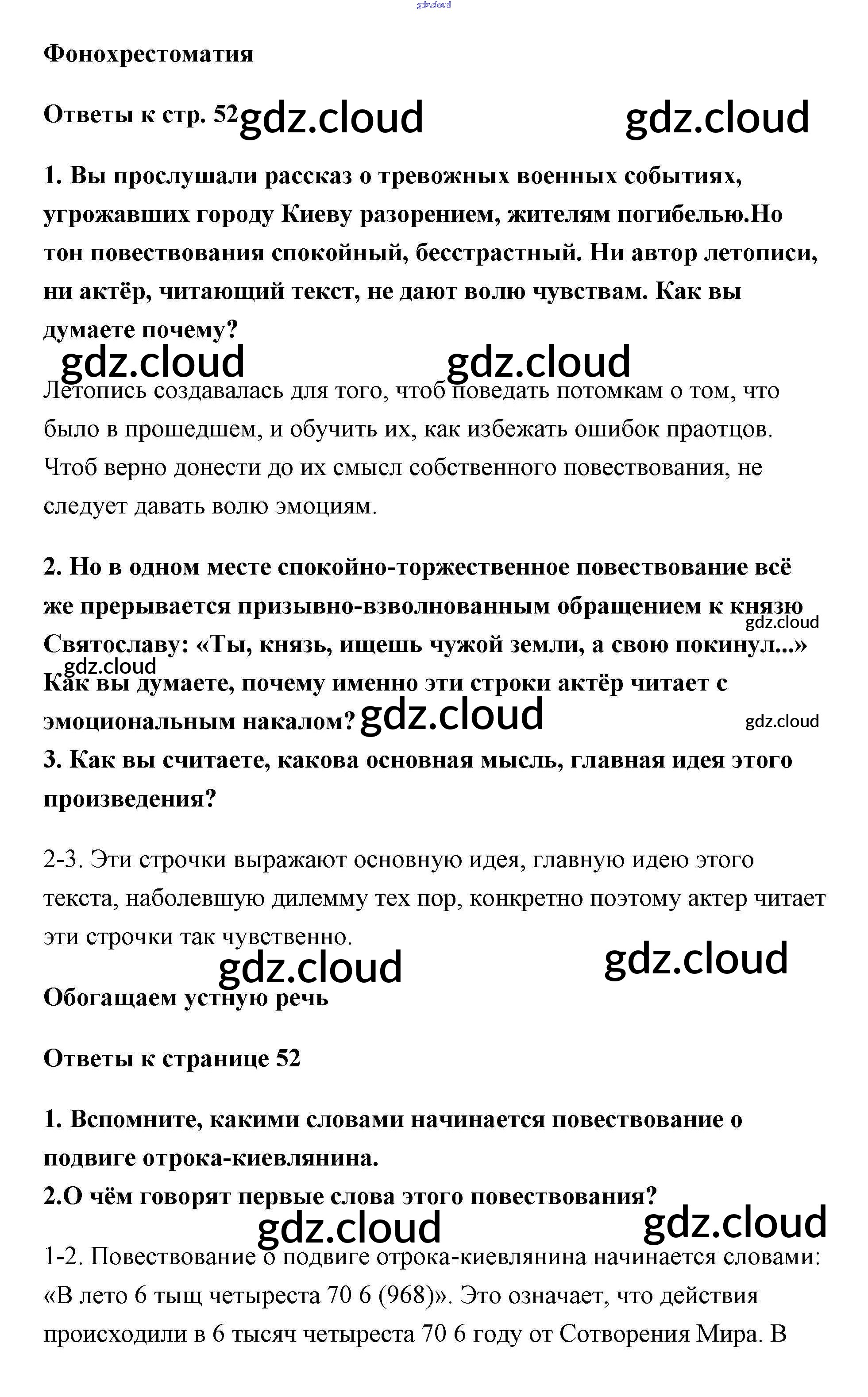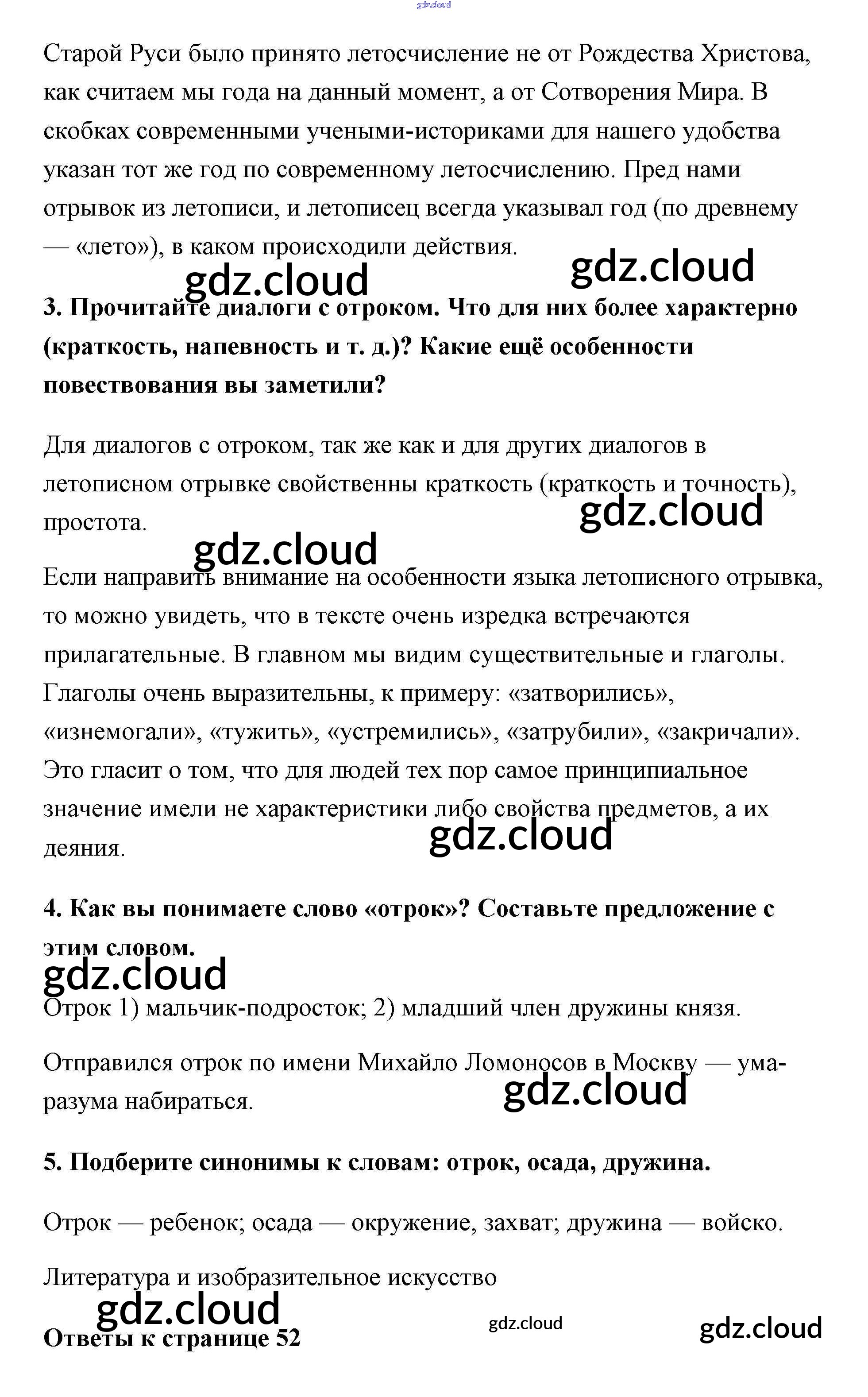 Ответ на задание стр.52 Учебник Литература за 5 (пятый) класс Коровина, Коровин, Журавлев 2016 Часть 1, 2