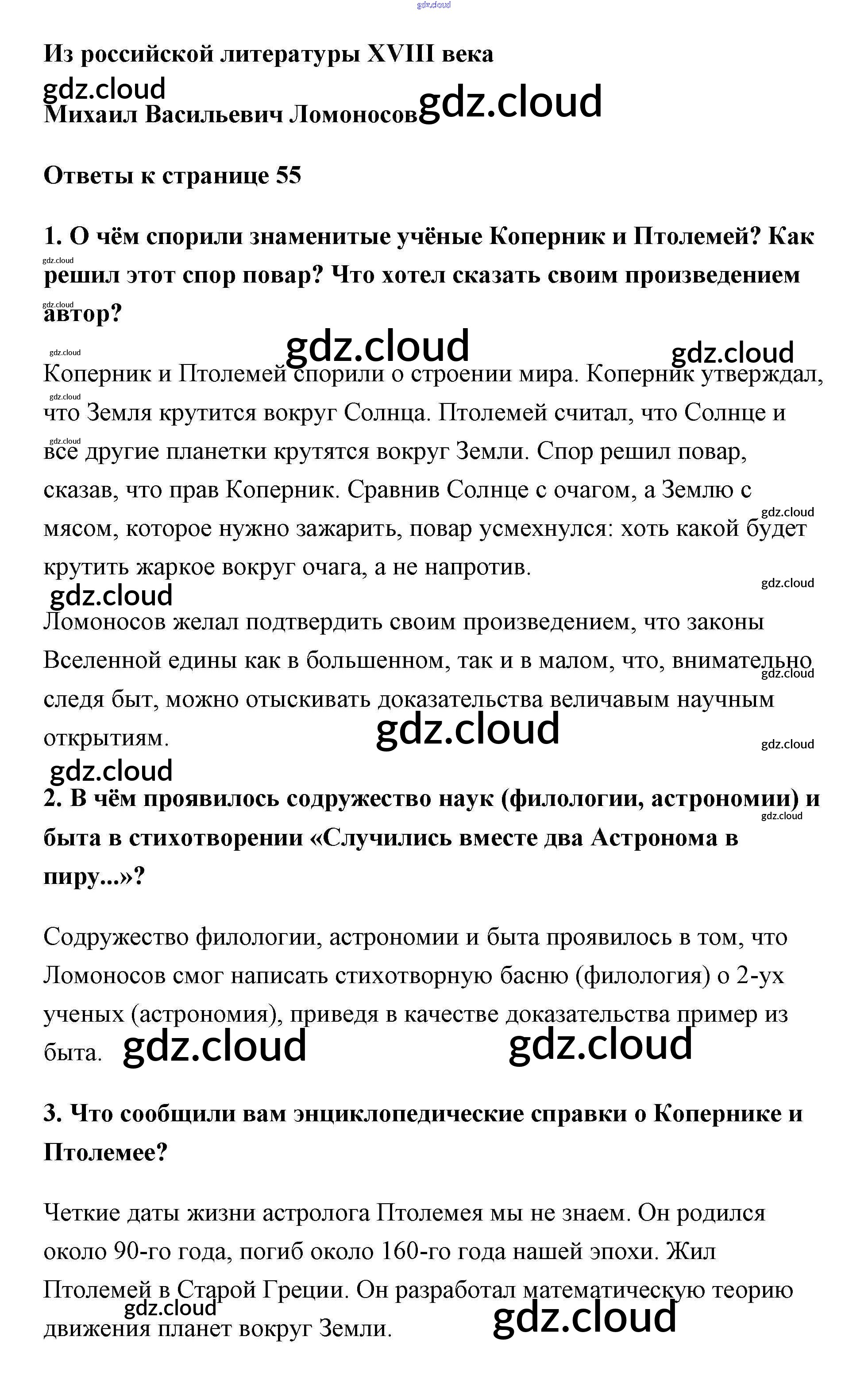 Ответ на задание стр.55 Учебник Литература за 5 (пятый) класс Коровина, Коровин, Журавлев 2016 Часть 1, 2