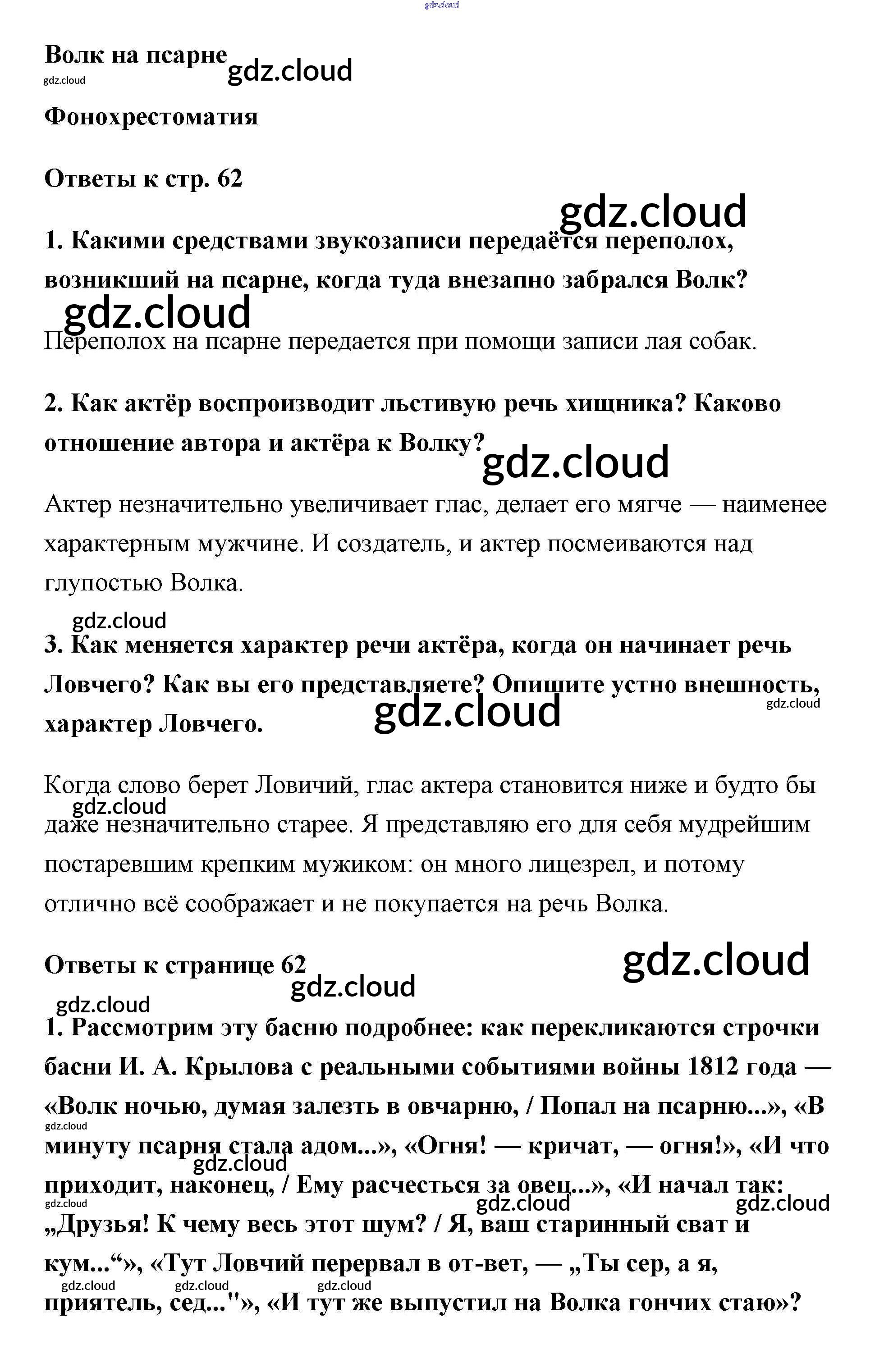 Ответ на задание стр.62 Учебник Литература за 5 (пятый) класс Коровина, Коровин, Журавлев 2016 Часть 1, 2