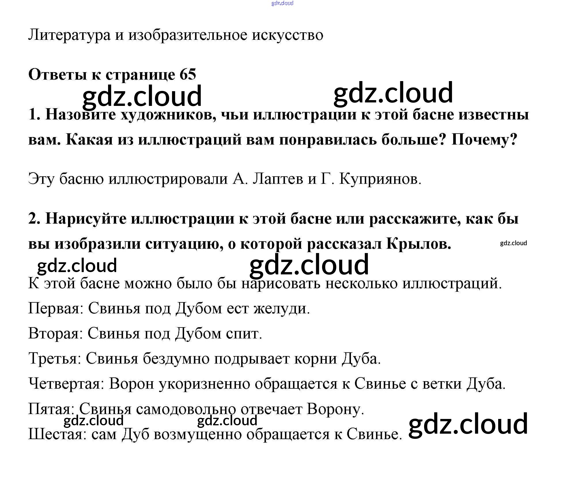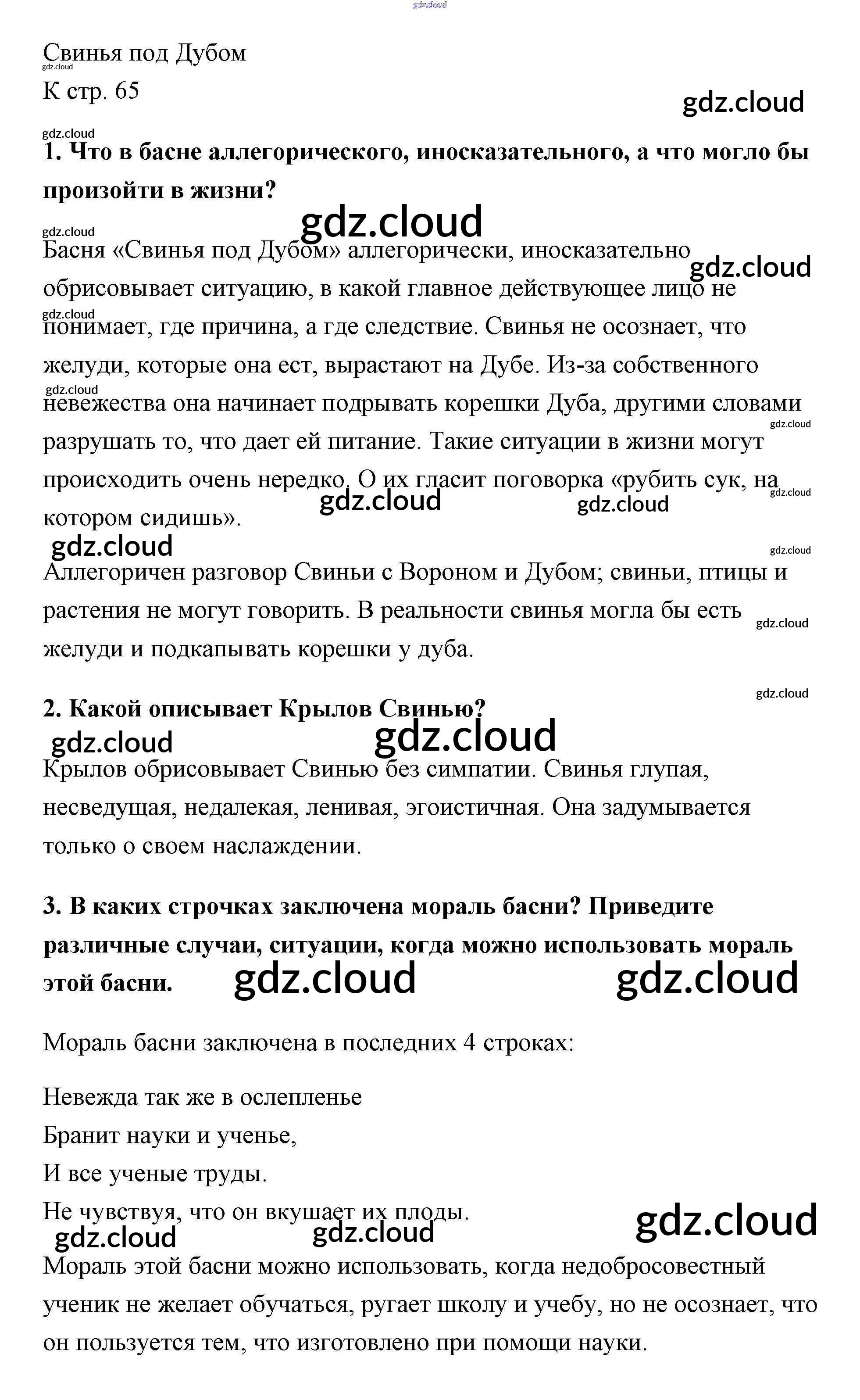 Ответ на задание стр.65 Учебник Литература за 5 (пятый) класс Коровина, Коровин, Журавлев 2016 Часть 1, 2