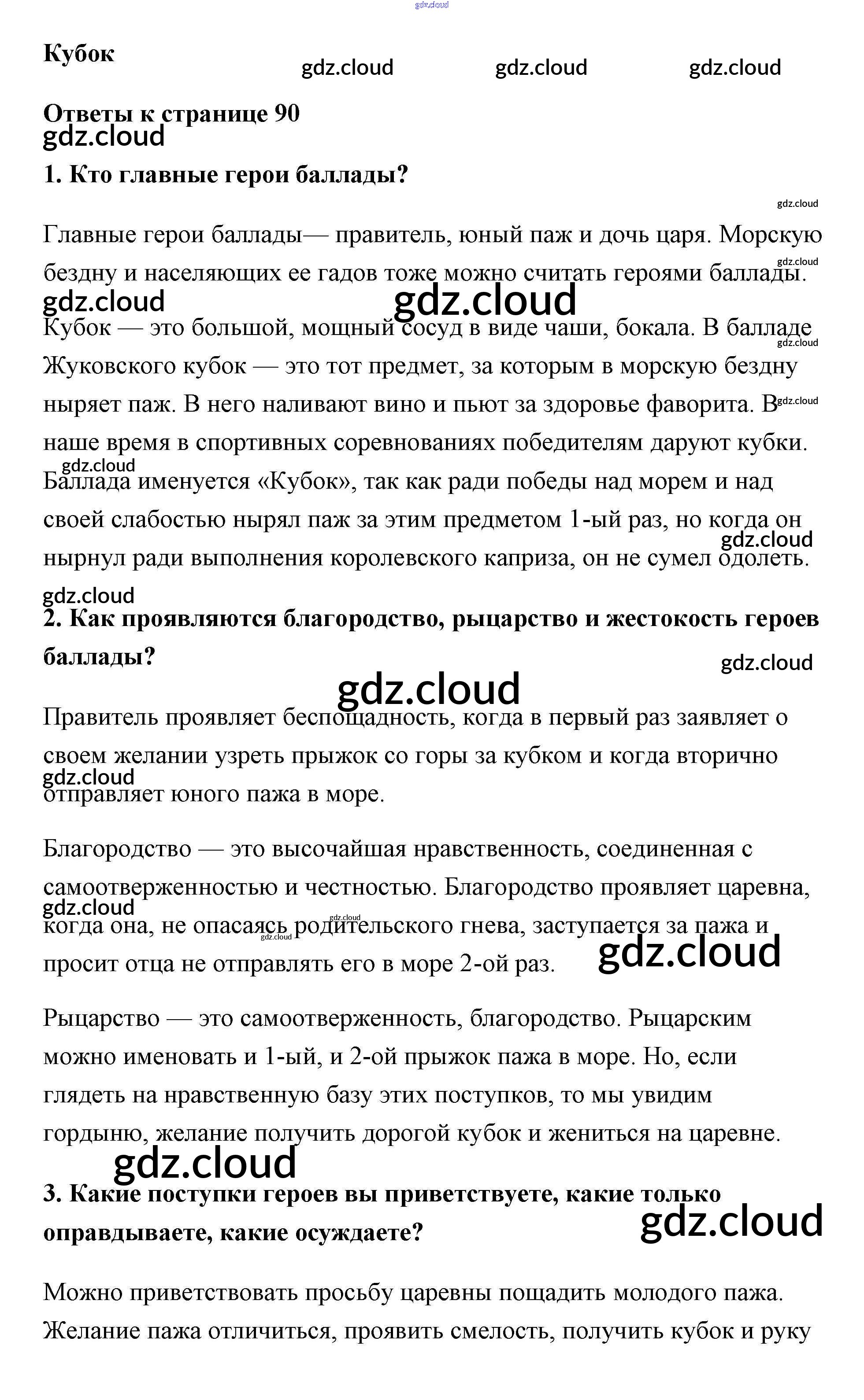 Ответ на задание стр.90 Учебник Литература за 5 (пятый) класс Коровина, Коровин, Журавлев 2016 Часть 1, 2